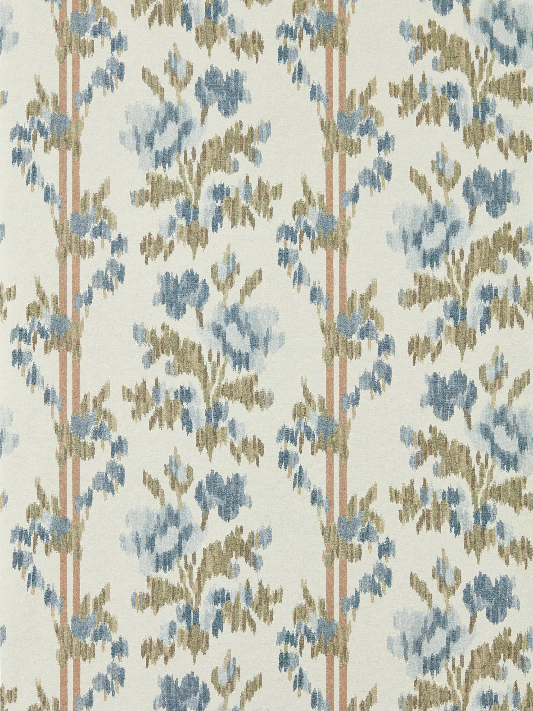 Apothecary Rose is a beautiful example of a warp-printed floral ikat where the warp yarns are printed before weaving the design. The design references the Highgrove Rose that climbs the house`s façade.