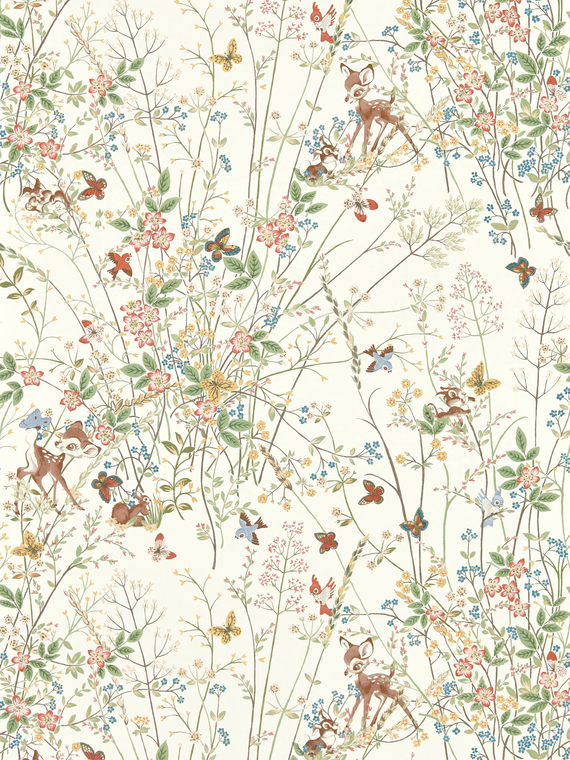 A host of woodland friends join Disney`s Bambi in this charming springtime scene of archival Sanderson florals. Created especially for the Disney Home x Sanderson collection and hand painted in gouache for a whimsical, quintessentially English feel.