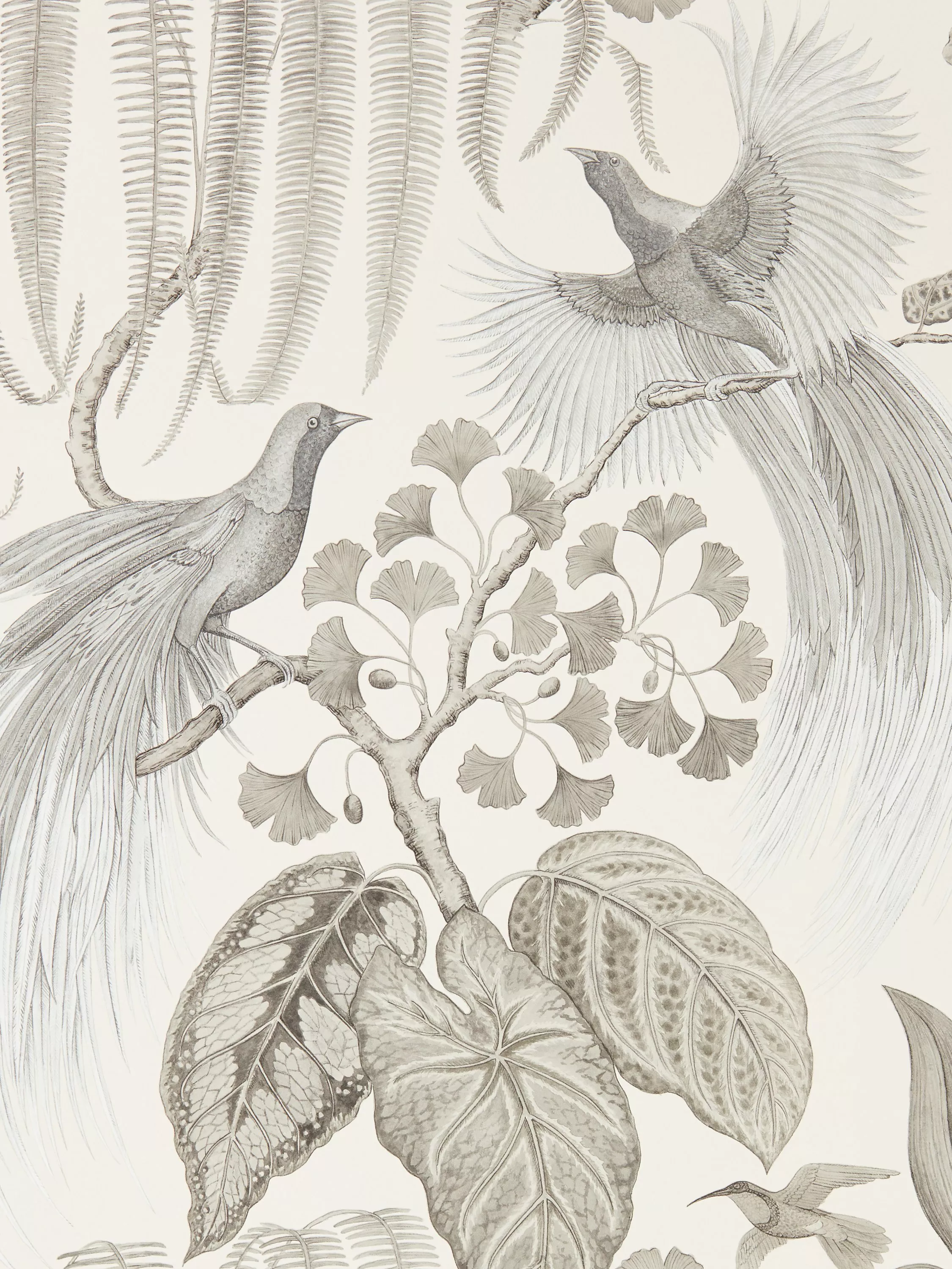 Sharing a bird's eye view of the jungle canopy, surrounded by orchids, foliage and feathers, this fabulous design from the Sanderson archive has been painted with pencil and watercolour in a more botanical style whilst retaining its key elements.