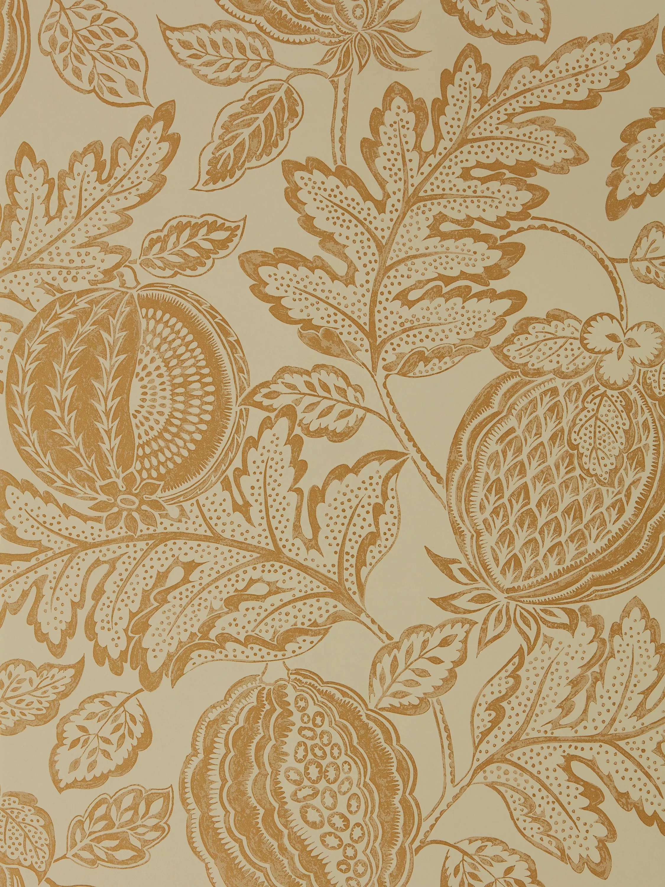 A truly stunning representation of exotic fruits inspired by damask influences and botanical drawing. Cataloupe is a wide with wallpaper with a wonderfully contemporary look. A hand-printed textural effect adorns the designs chalky opaque ground and a beautiful metallic shimmer features across on some colourways.