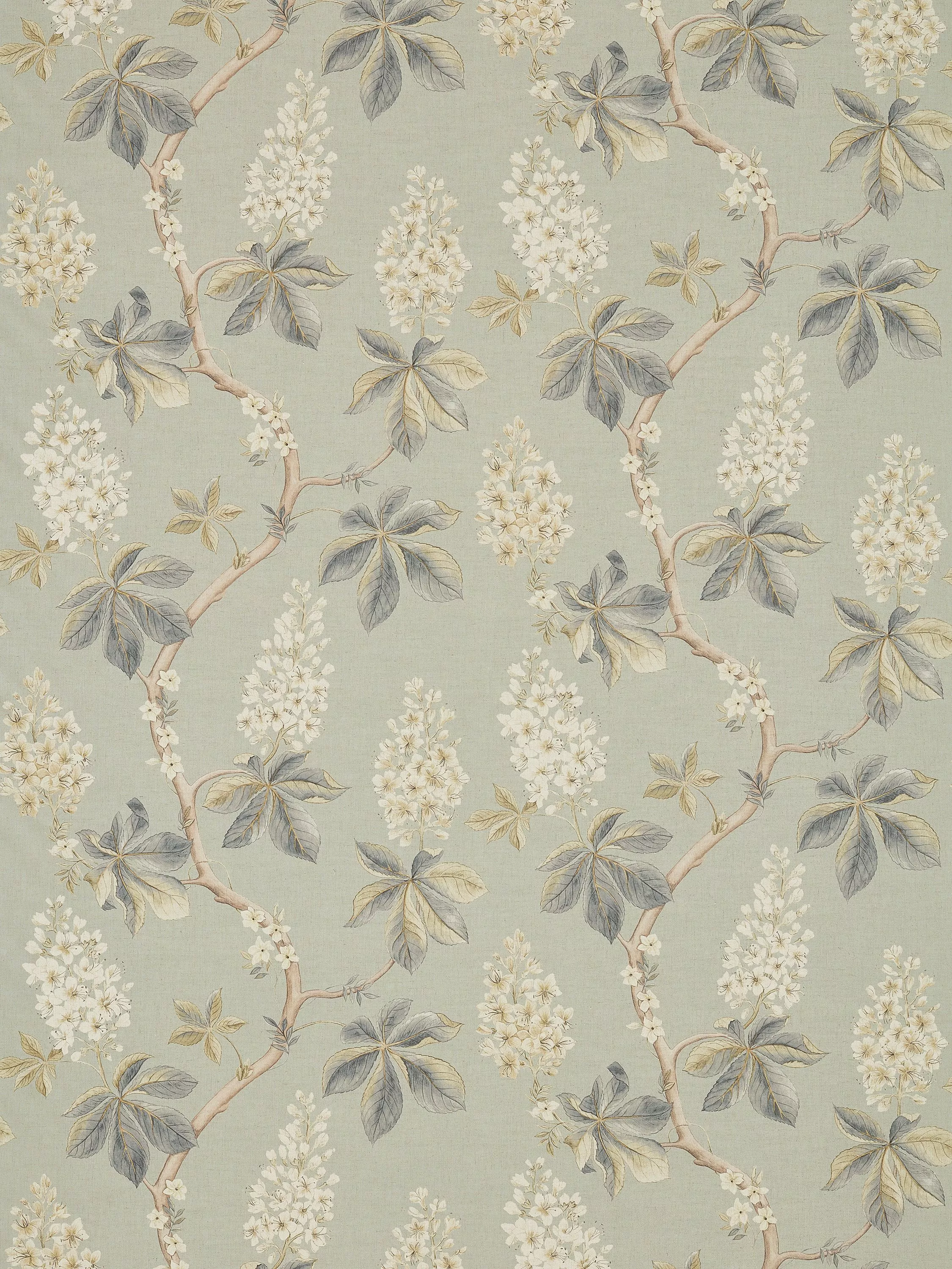 Trails of horse chestnut blossom adorn this linen-mix fabric and were originally painted in watercolour with pencil detailing.