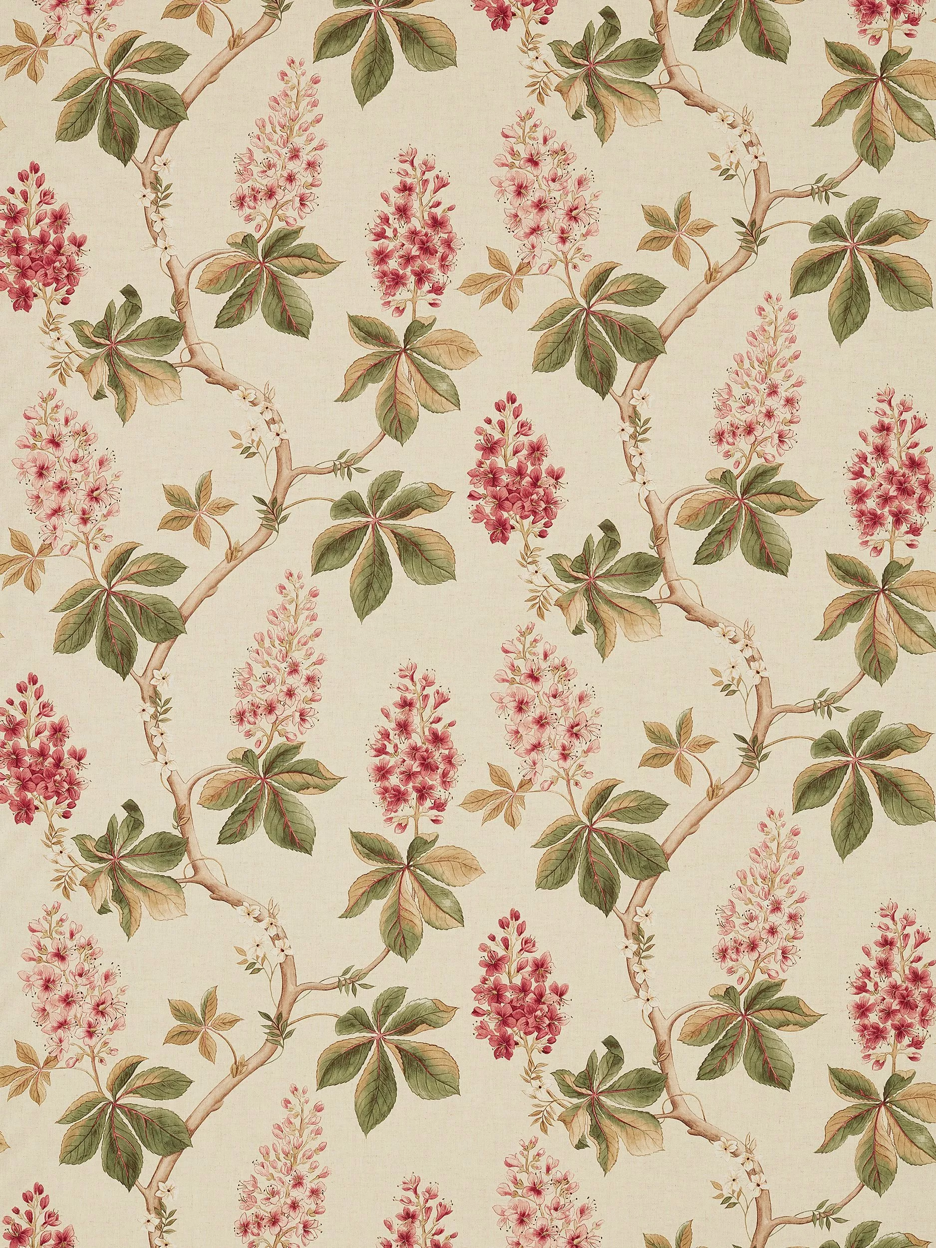 Trails of horse chestnut blossom adorn this linen-mix fabric and were originally painted in watercolour with pencil detailing.