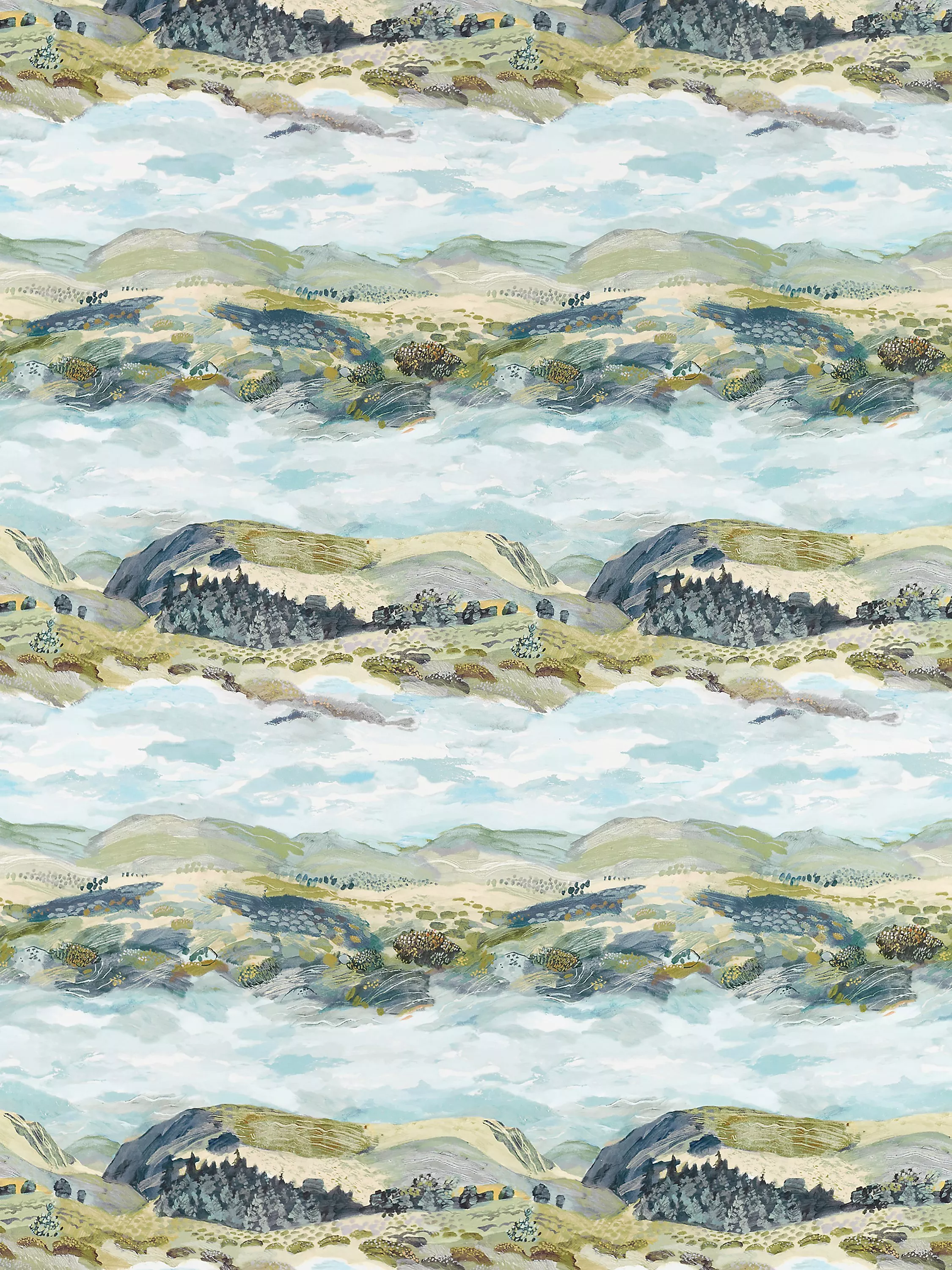 The Elysian fabric from Sanderson has an impressionist landscape design. The brushstrokes of the original design, so central to the art movement, beautifully capture the scene of rolling hills and sky.