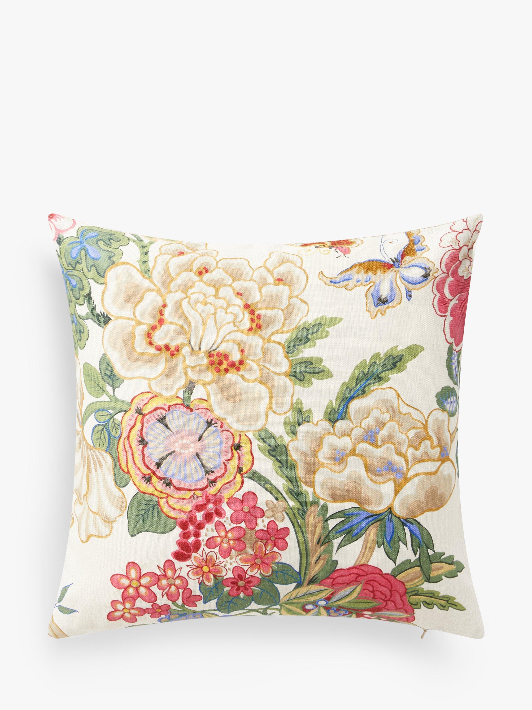 In contrast to its blousy Victorian contemporaries, the Chinese inspired decorative style of this 1920s Jeffrey & Co. archive design is adorned with large peonies and tropical butterflies.