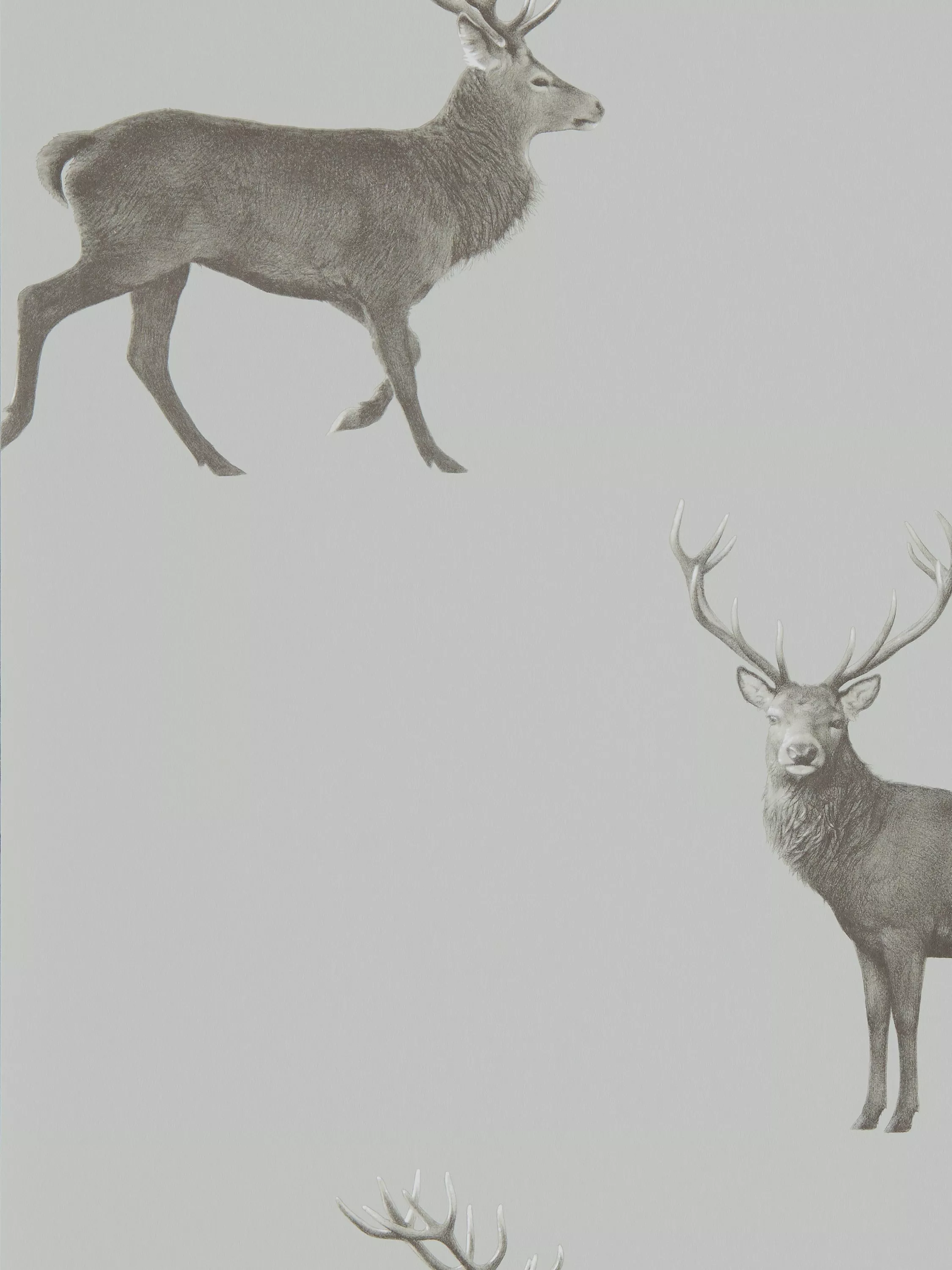 Majestic and proud, Evesham Deer is a smart, well-spaced wallpaper, contemporised by using subtle golden metallic inks beneath the hand-drawn penwork.