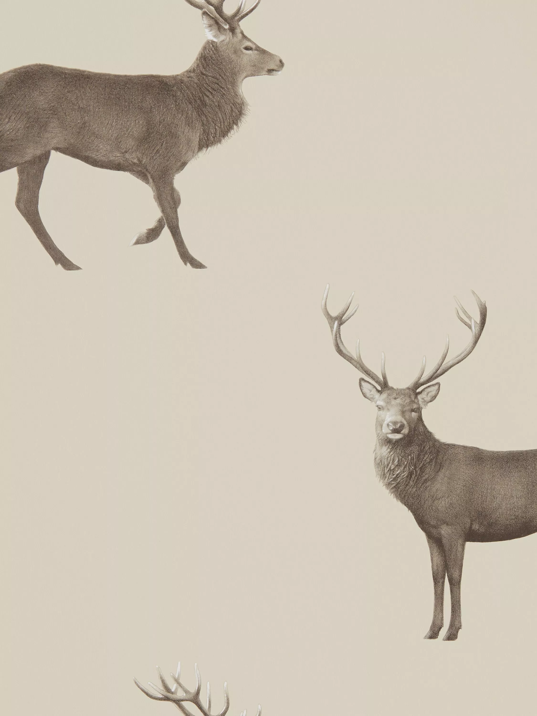 Majestic and proud, Evesham Deer is a smart, well-spaced wallpaper, contemporised by using subtle golden metallic inks beneath the hand-drawn penwork.