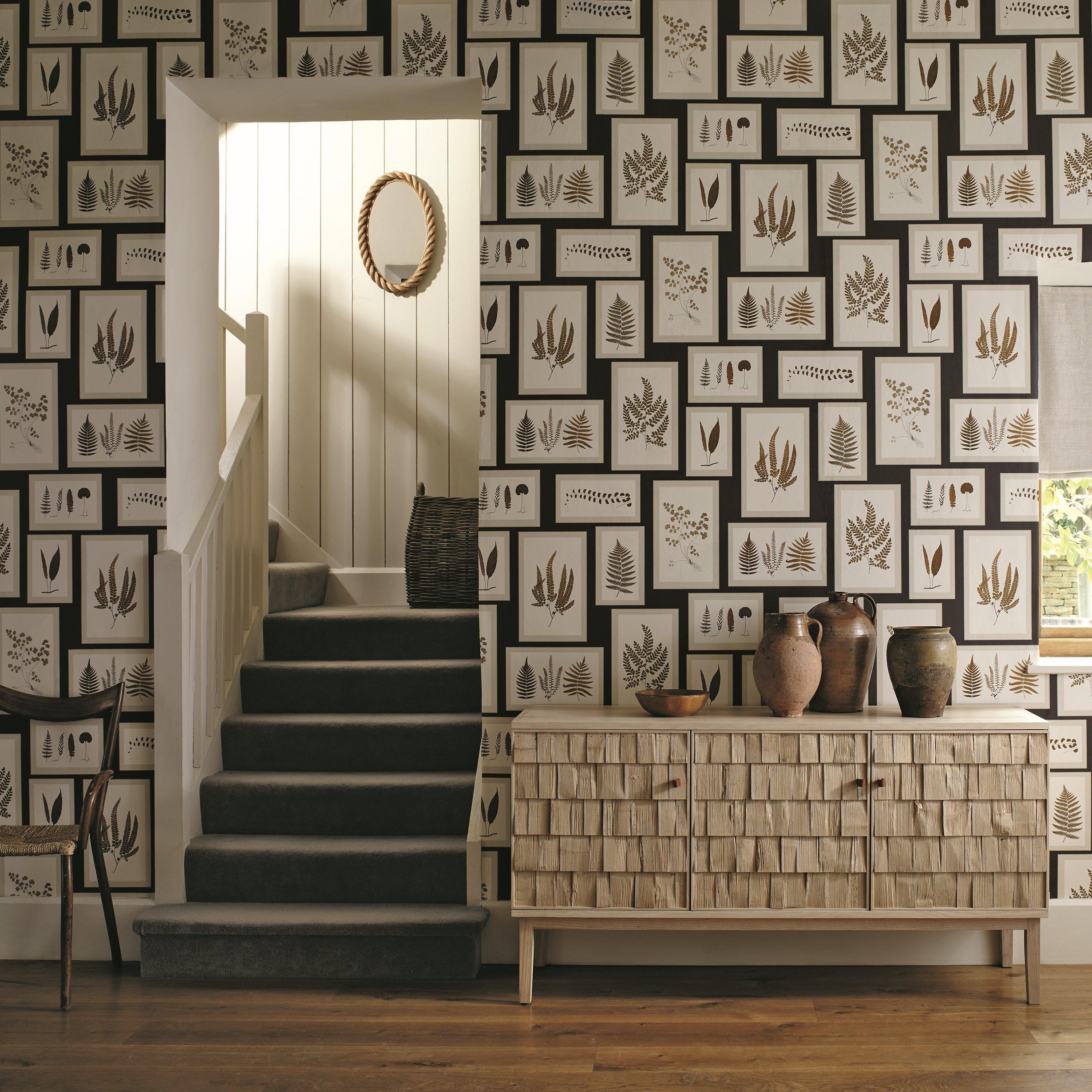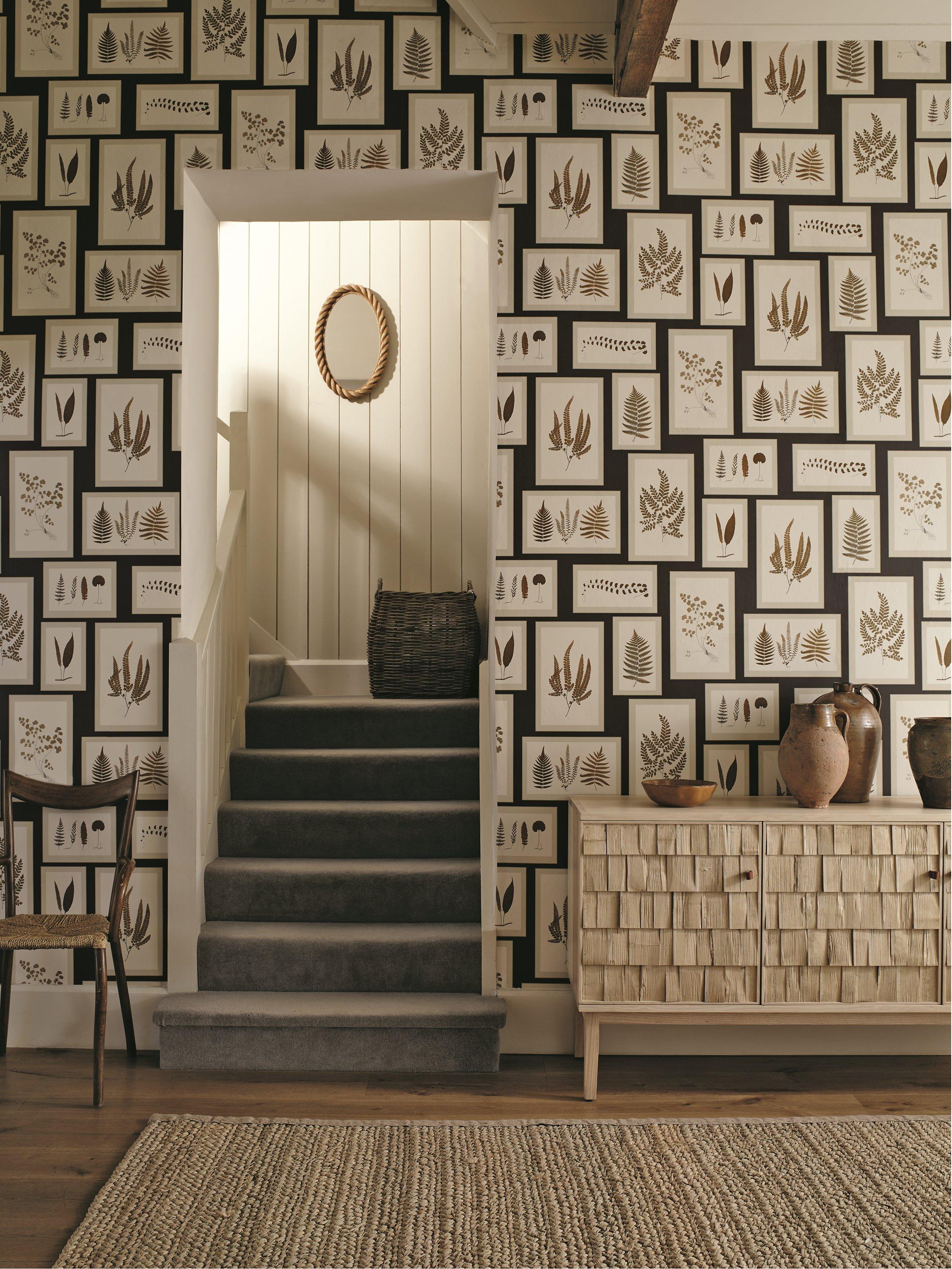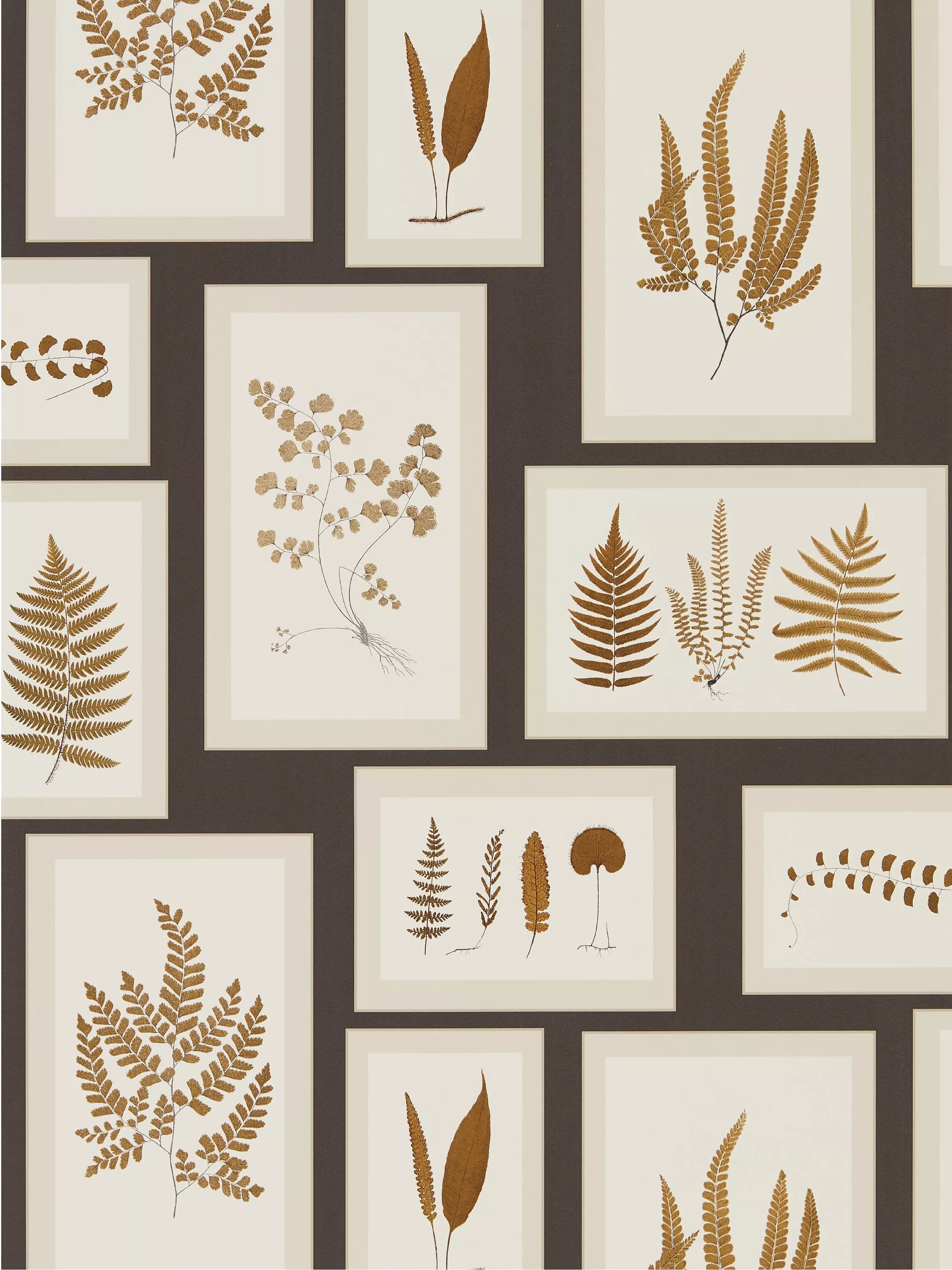 A selection of beautifully drawn fern prints, taken from the Sanderson archive, are placed within frames to create artfully displayed prints on a wall.