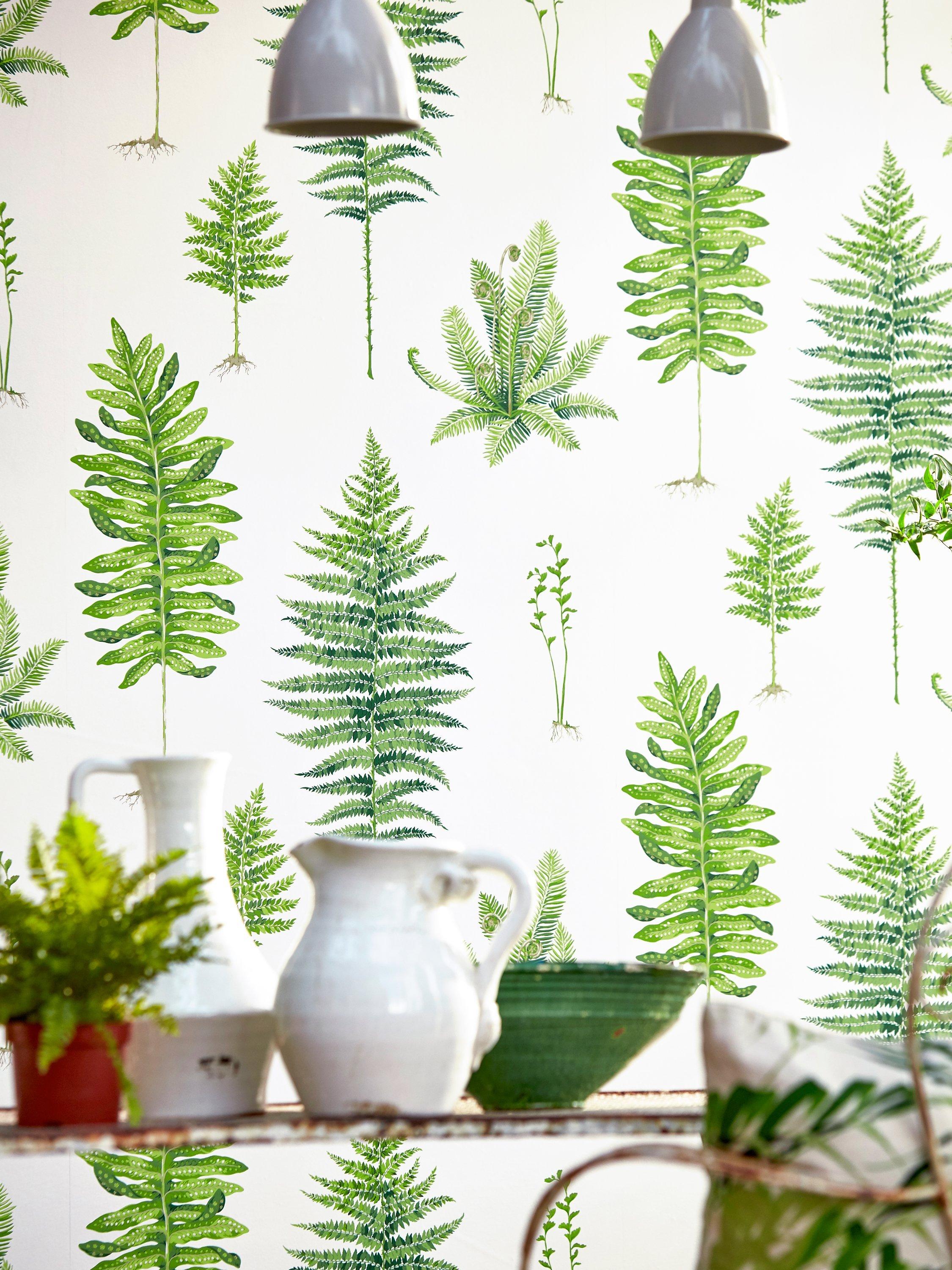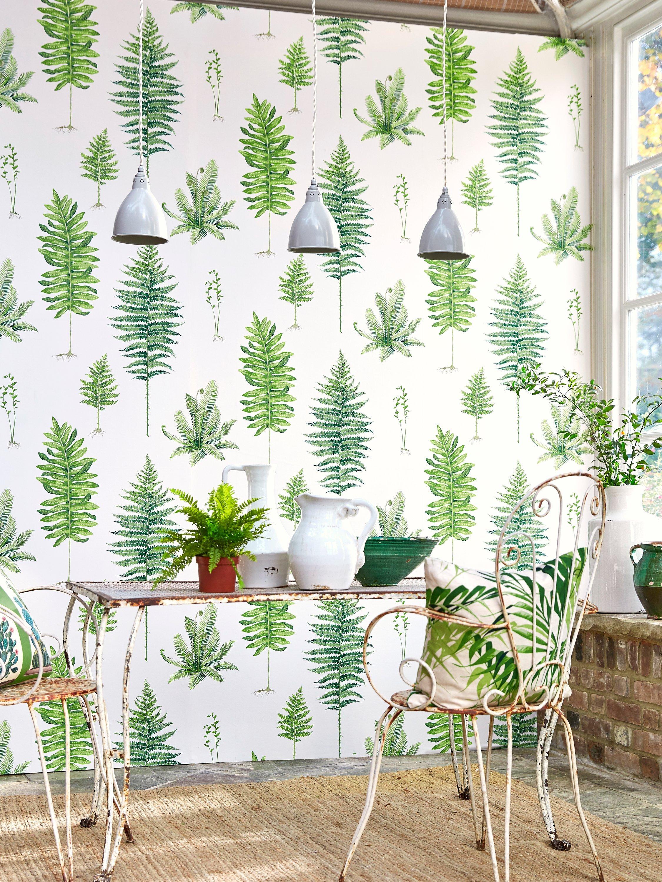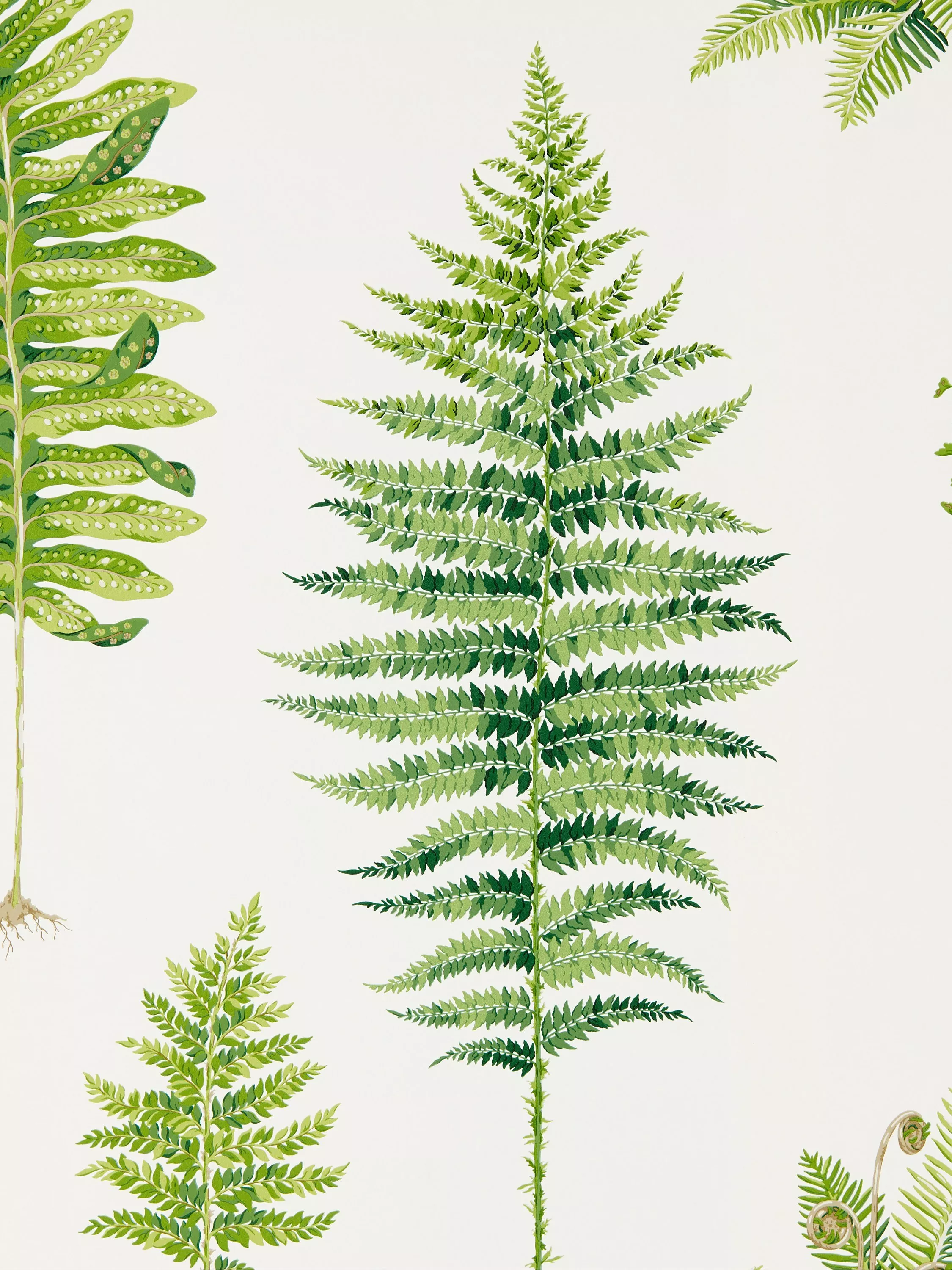 Inspired by the nineteenth-century craze for fern collecting and the drawings in subsequent botanist s publications, this beautifully illustrated Sanderson wallpaper displays diverse and characterful leaf shapes and fragile fronds.