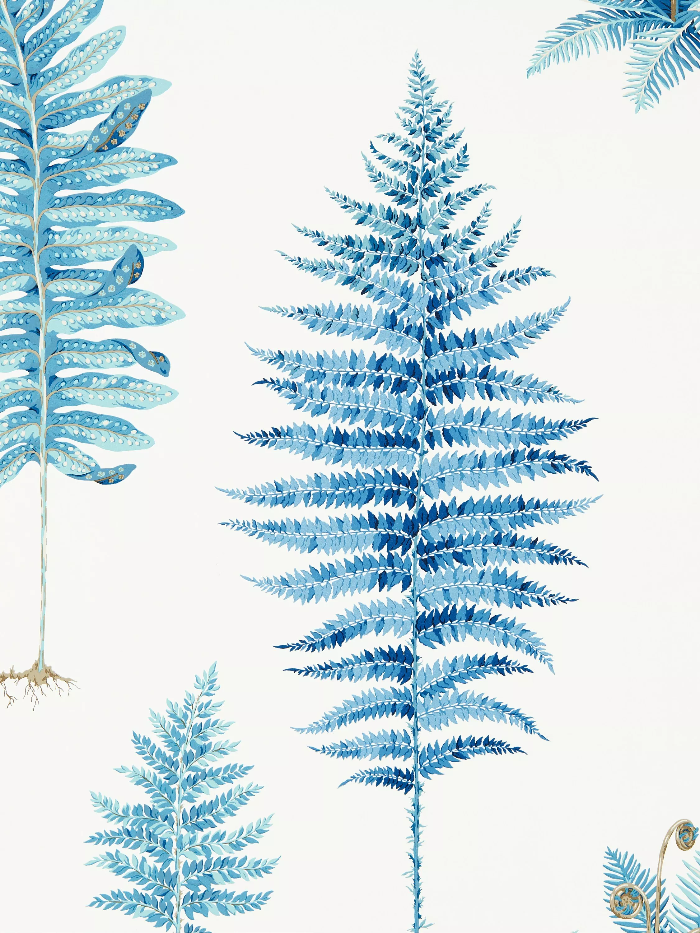 Inspired by the nineteenth-century craze for fern collecting and the drawings in subsequent botanist s publications, this beautifully illustrated Sanderson wallpaper displays diverse and characterful leaf shapes and fragile fronds.
