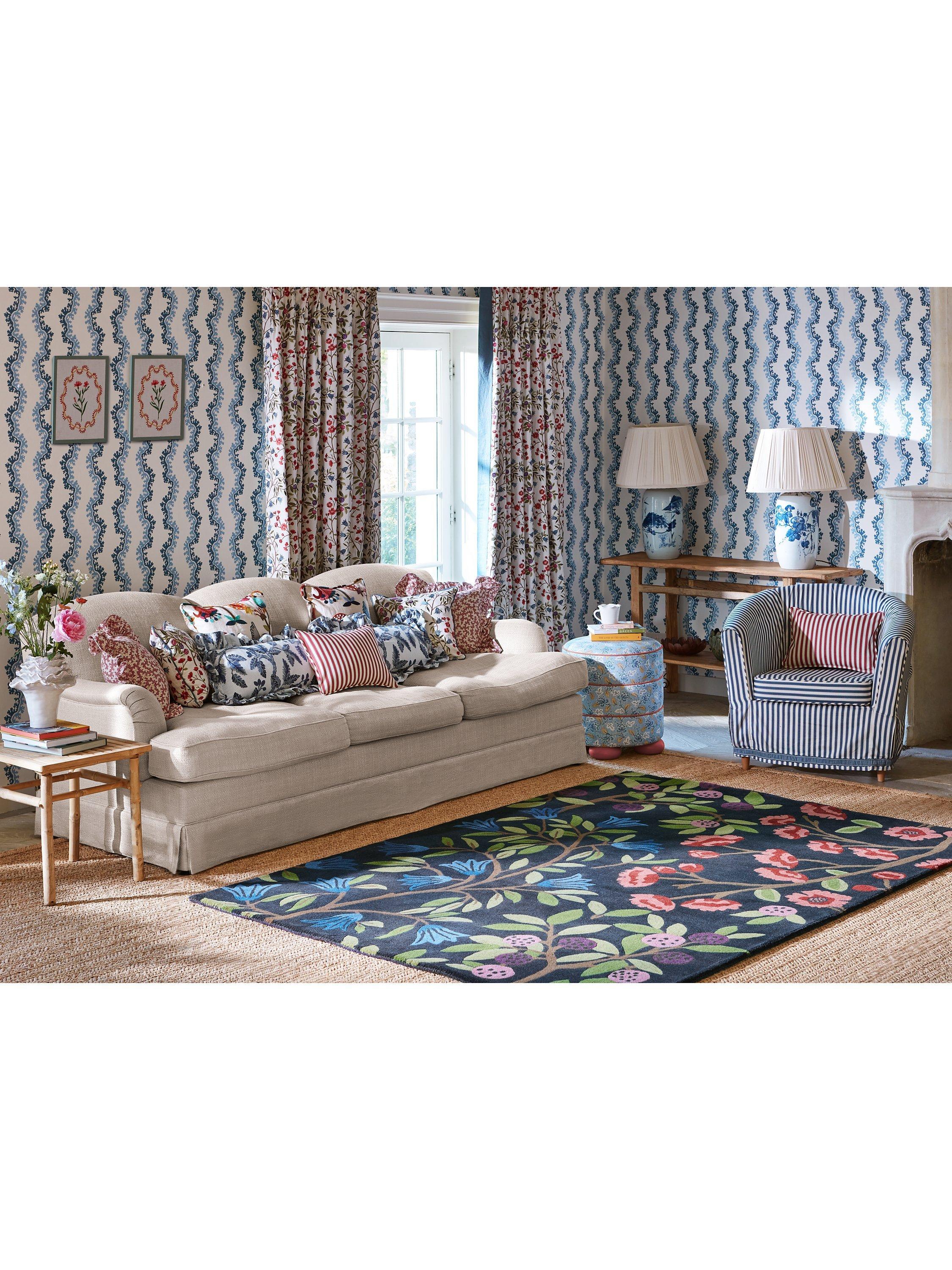 The rug comes from Sanderson, founded in 1860 and renowned for their hand-drawn designs and English garden palettes that bring a timeless and easy elegance to the home.
