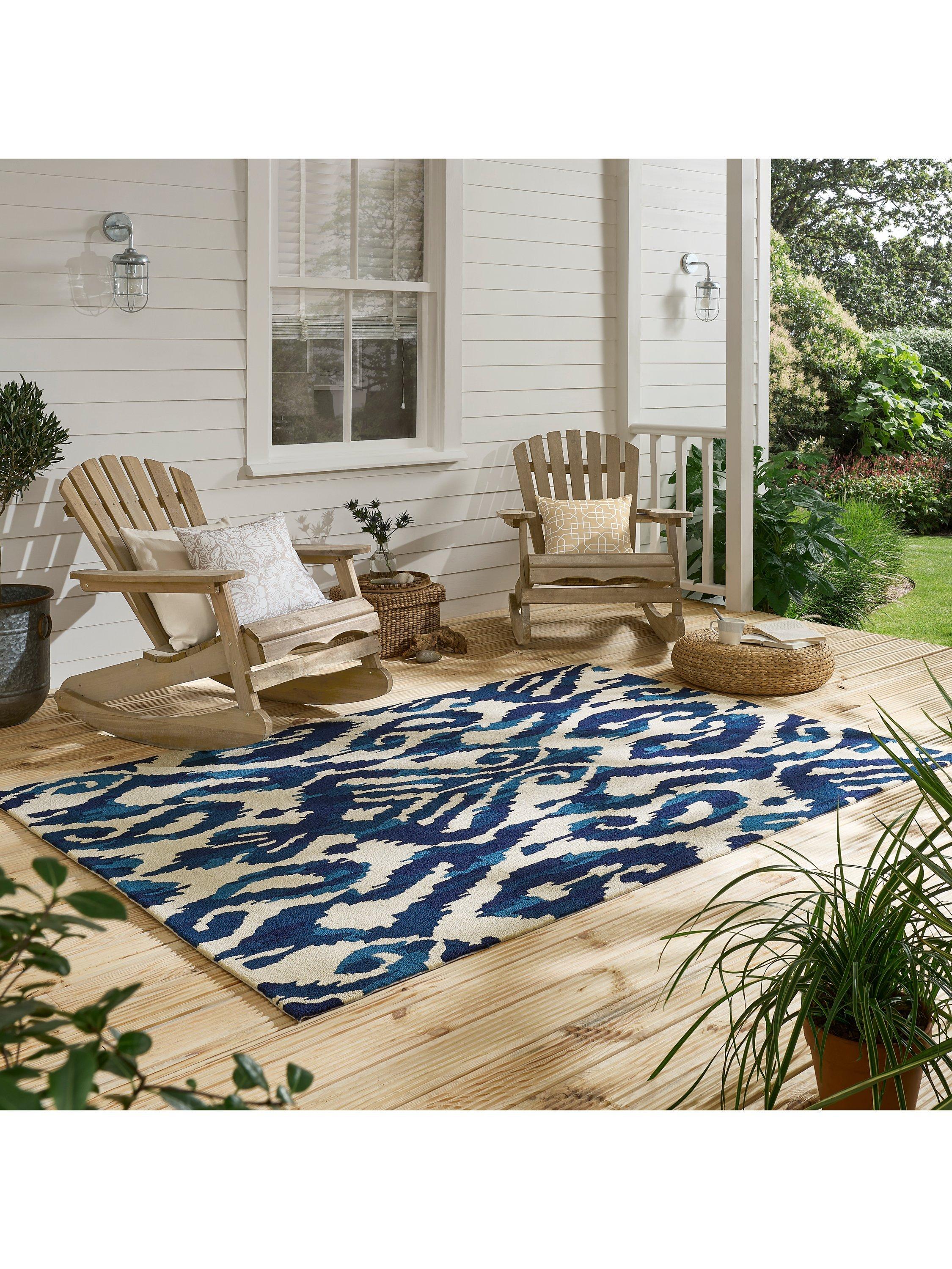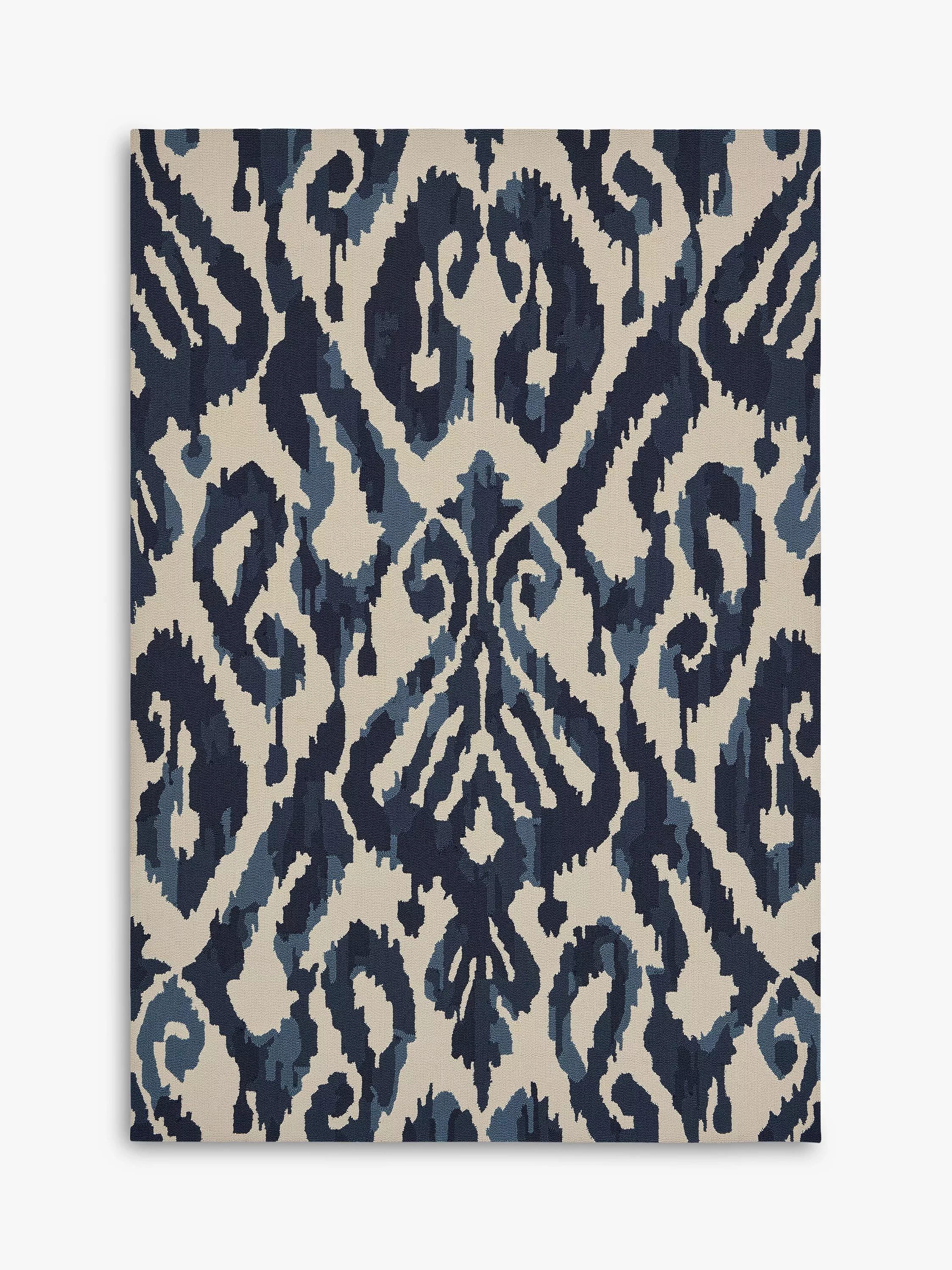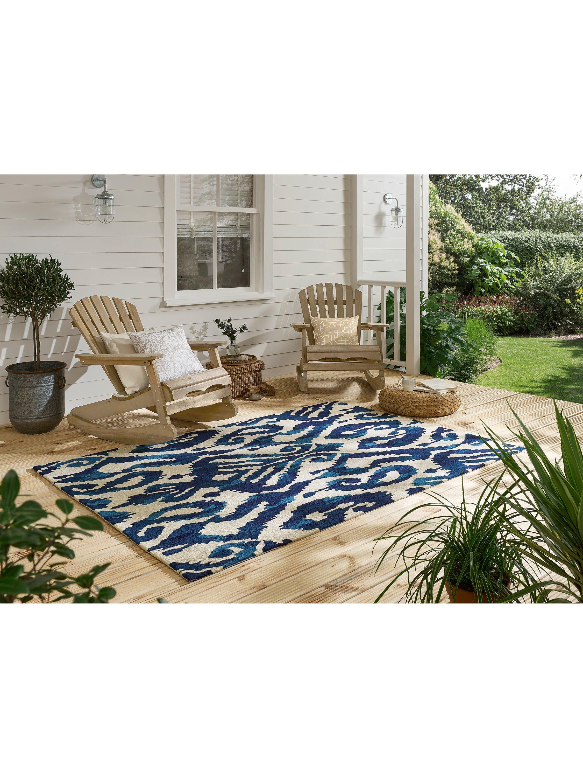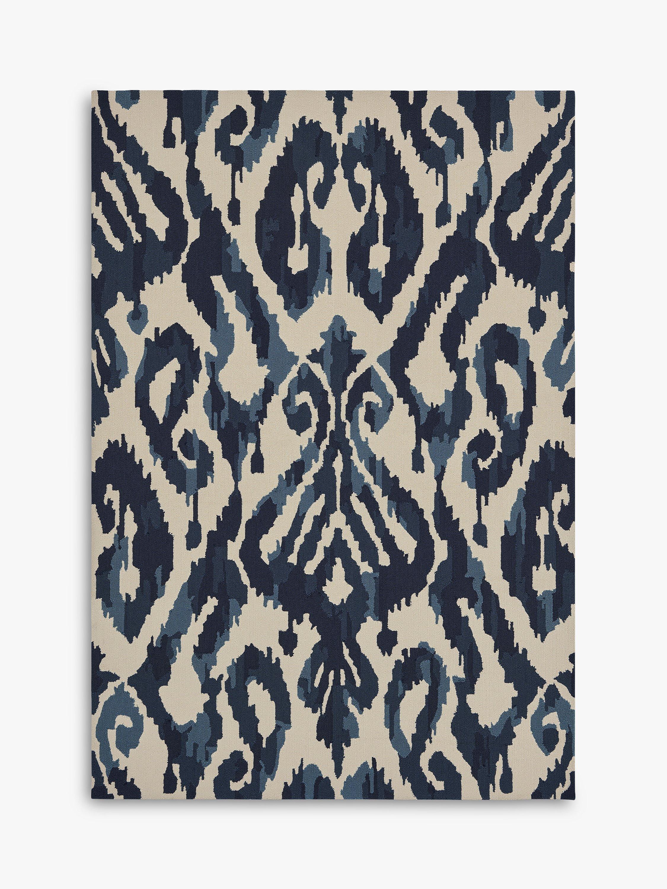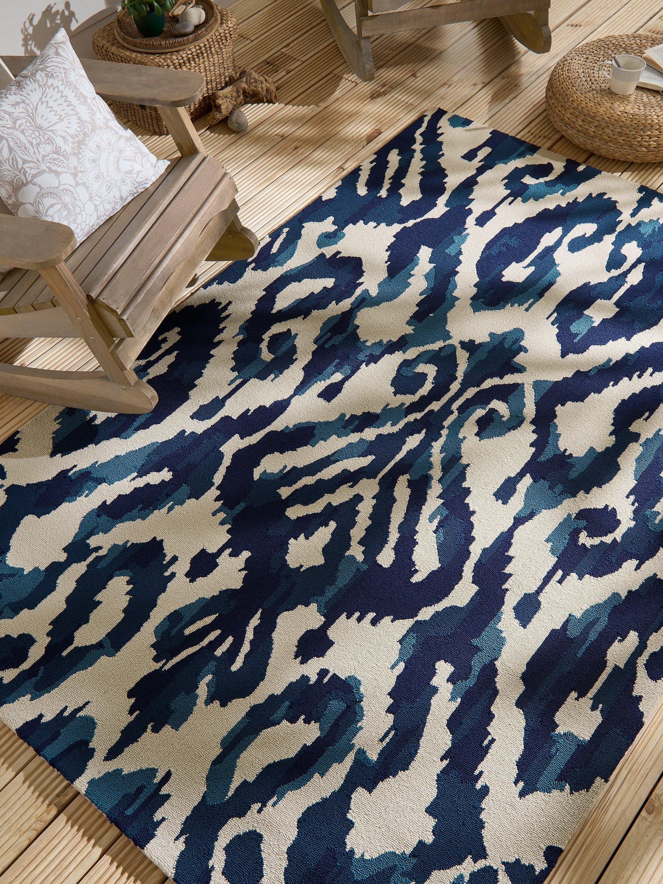 The source for this design was an Uzbek adras robe, woven with pre-printed warps to create a beautifully blurred motif. Designed to work in both indoor and outdoor spaces, it's a great option for decking or conservatories.