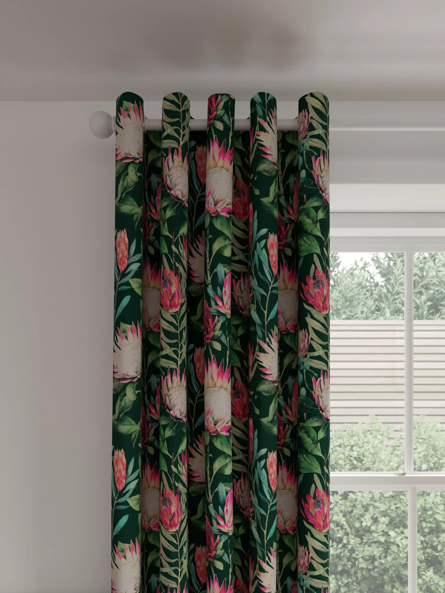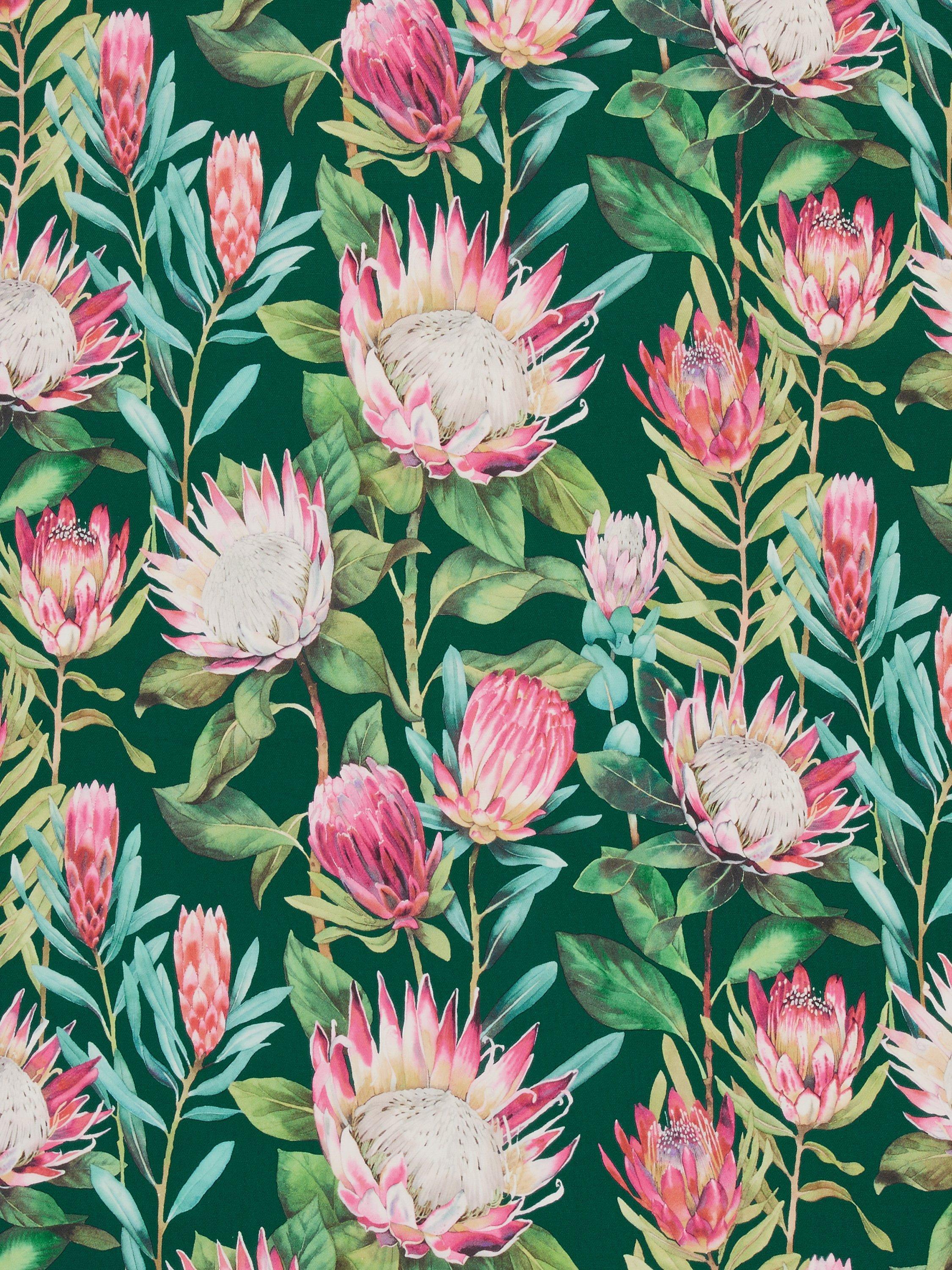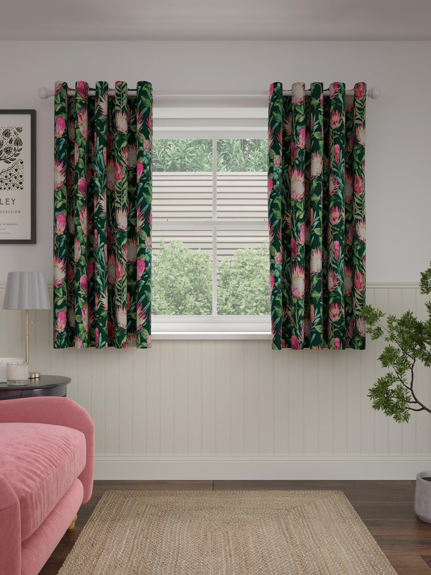 From the Sanderson archives, this curtain design is a repainted watercolour of an old design. The exotic King Protea flower adorns the fabric, fully covering the cotton ground. The curtains have a contemporary eyelet heading and are fully lined, which adds the perfect finish, improving the drape and enhancing the vibrancy of the pattern.