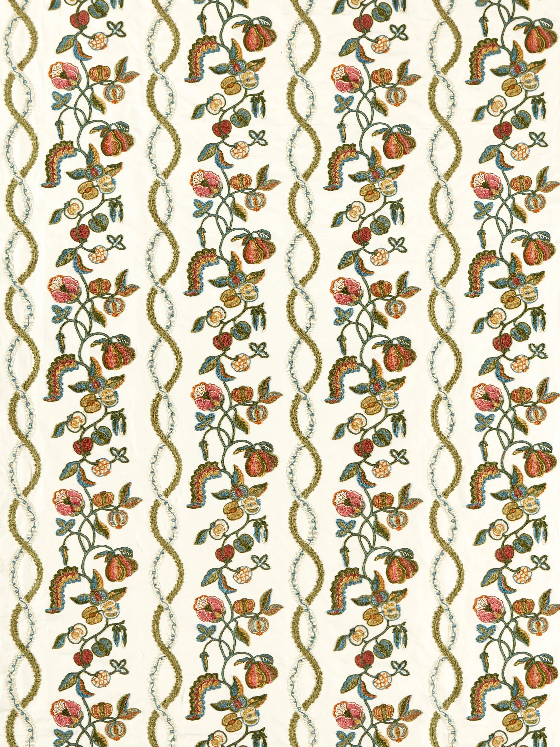 The Kitchen Garden embroidery is a finely stitched crewel work referencing the pears, apples, gooseberries and runner beans grown amongst the foliage of Highgrove`s Kitchen Garden. The design`s ribbon trail nods to the pleached apple tunnel that runs through the garden.