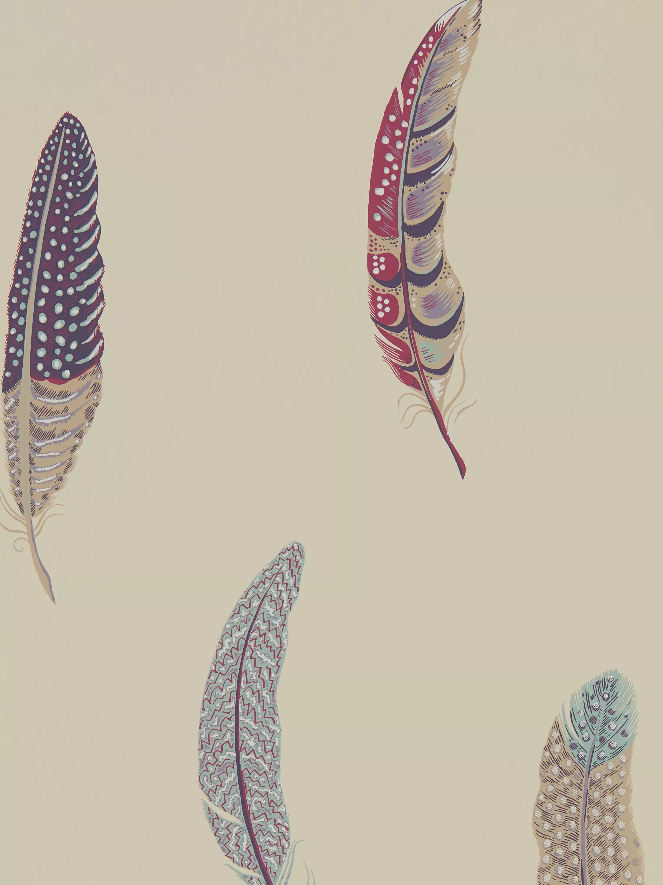 Elegantly-spaced partridge feathers printed with opaque inks. A beautiful chalky finish completes the look of this stunning design.