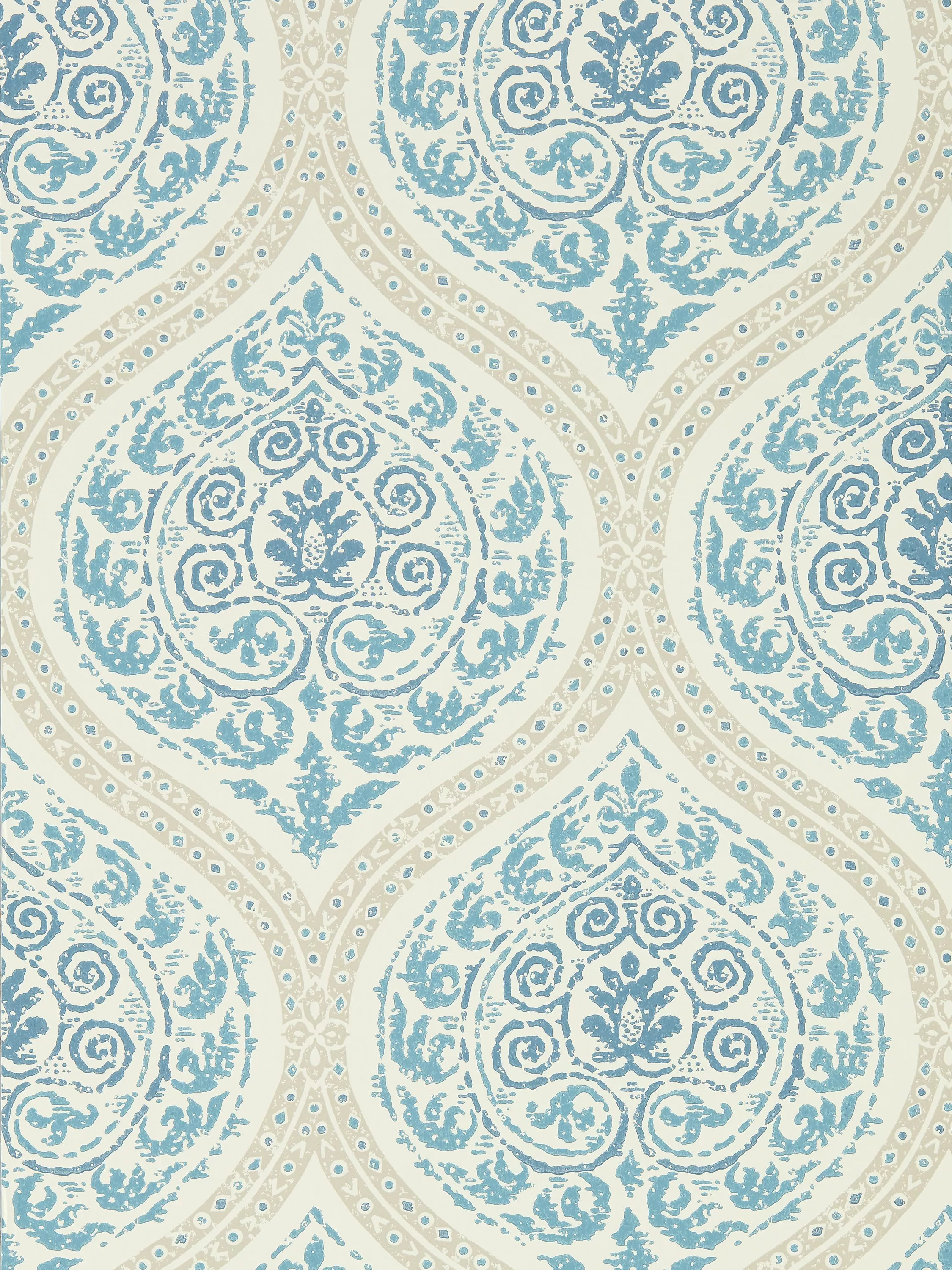 In a fresco style and reminiscent of Indian block prints, this mirrored agee trellis wallpaper is filled with decorative damask detail. In a range of beautiful chalky shades.