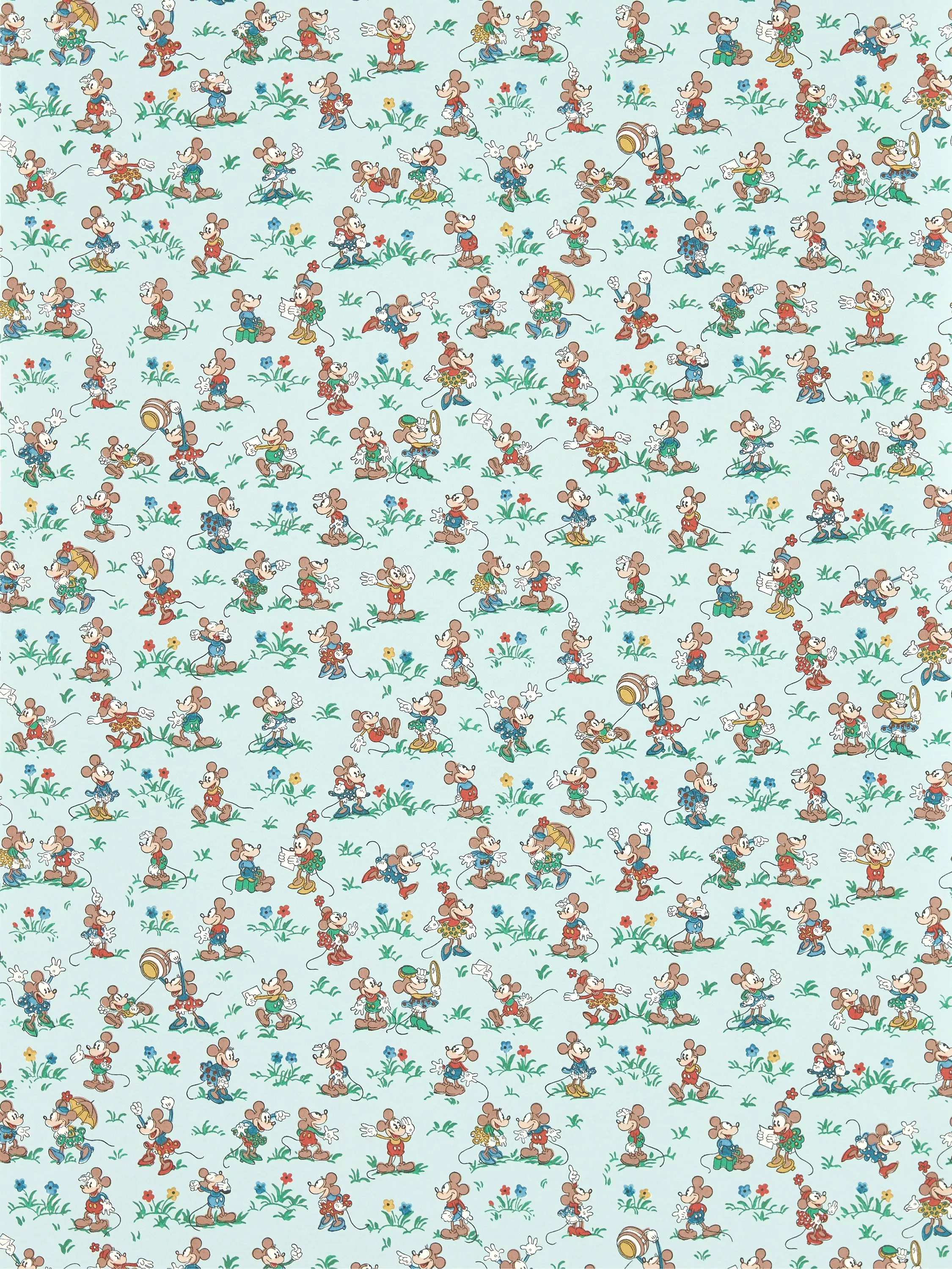 Disney`s Mickey and Minnie go adventuring across this playful 1934 Sanderson design which is produced in the same scale and colourways as the original handblock printed archive document.