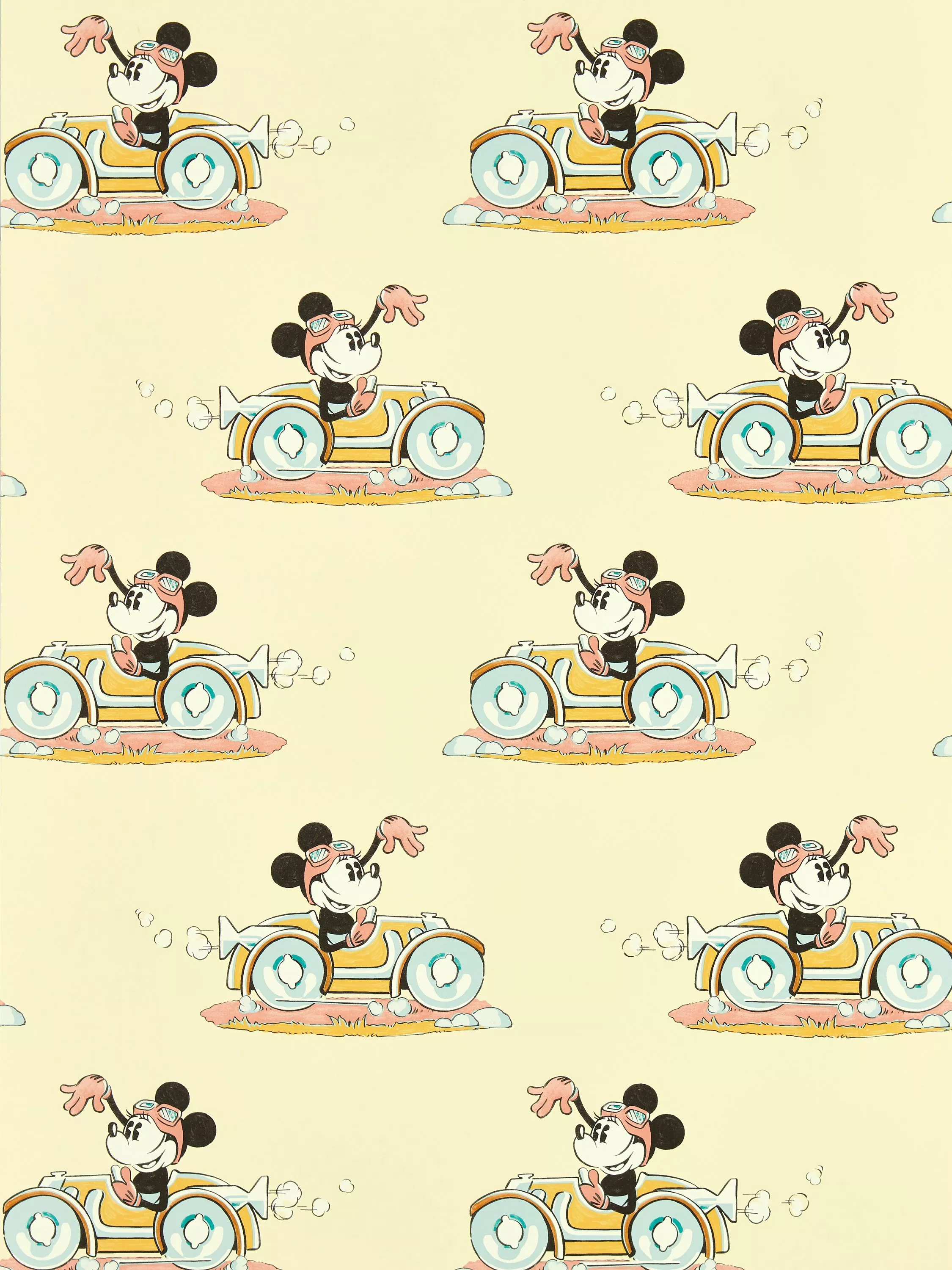 This design of Disney`s Minnie Mouse out and about in her open-top car is inspired by a beautifully hand-painted wall sticker from the Sanderson archive.