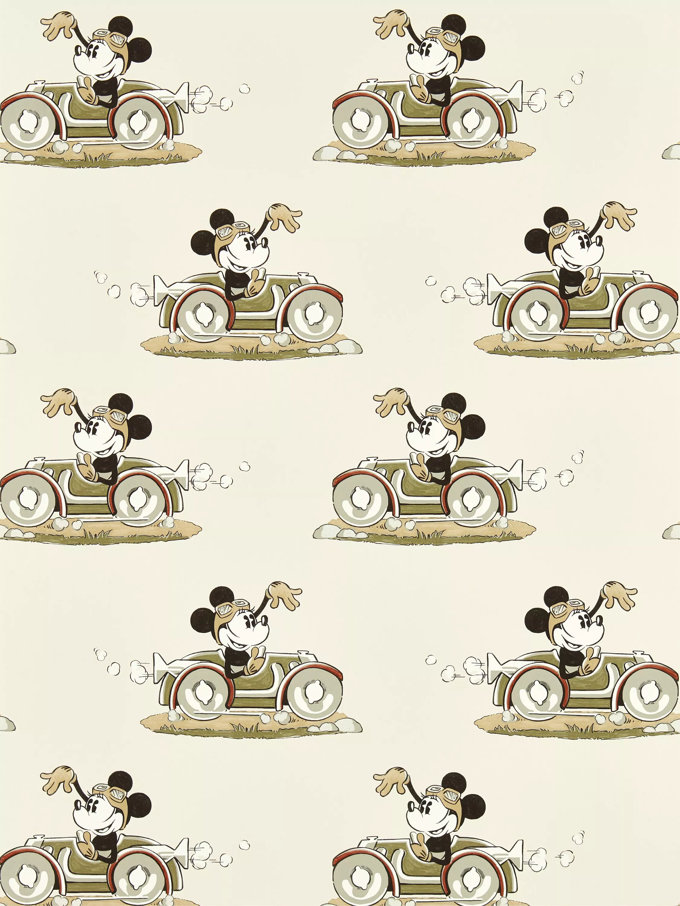 This design of Disney`s Minnie Mouse out and about in her open-top car is inspired by a beautifully hand-painted wall sticker from the Sanderson archive.