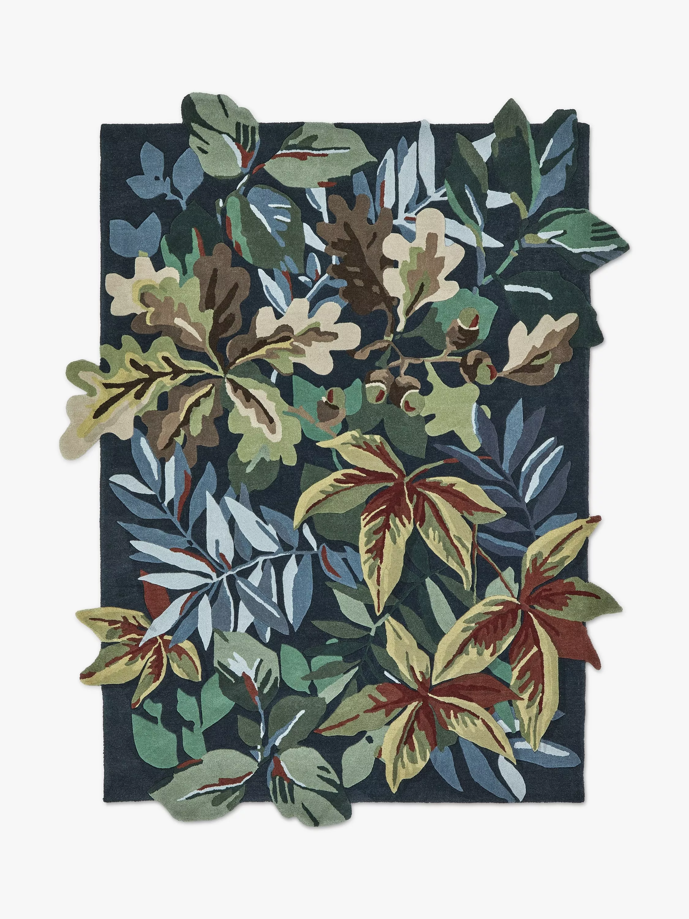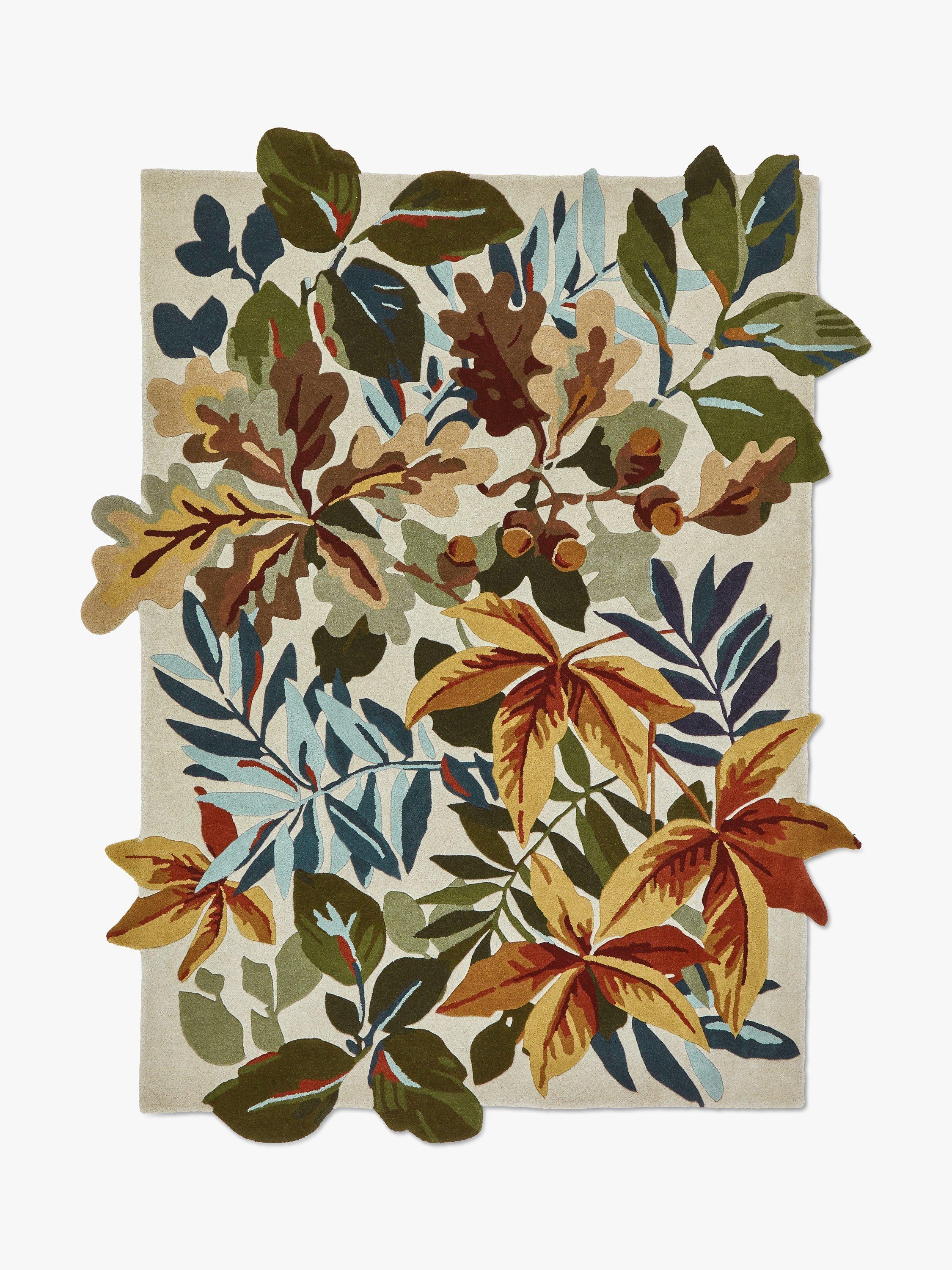 Taking its name from Robin's Wood, an area of diverse flora, fauna and ancient woodland thought to date back to after the last ice age, this all-over design of oak and sycamore leaves is inspired by an archive document. Sumptuous rich colours allude to the changing seasons, with the carved edges of the rug adding depth to the ground and exaggerating the luscious leaves within the design. The light ground of the colourway contrasts against the crisp shade of the leaves. Made with 100% wool, the texture of the rug suits this design perfectly.