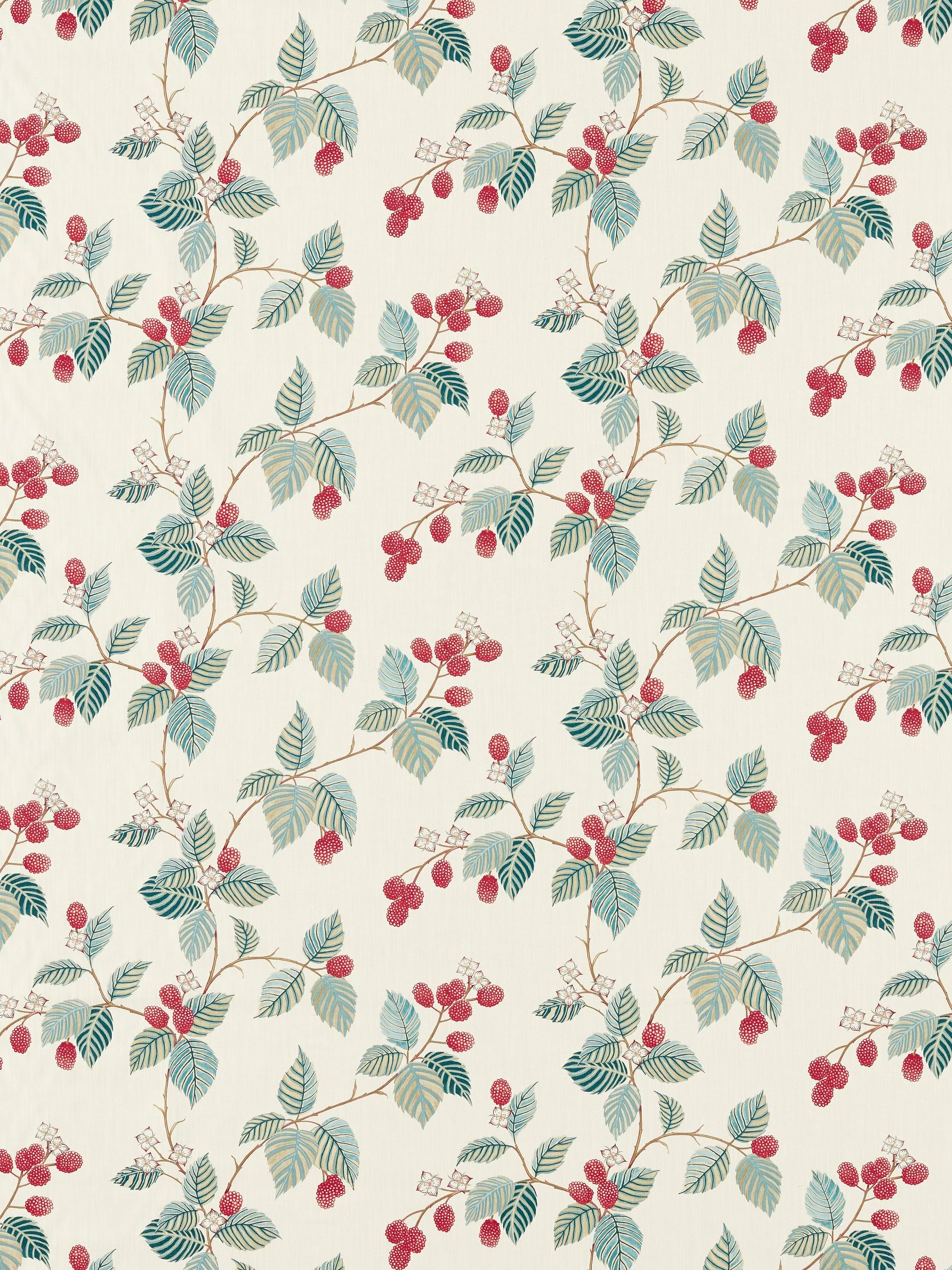 Beautifully hand painted in the Sanderson studio, these plump berries look good enough to eat. Sharing the family name for raspberries and blackberries, this pretty, woodland-inspired fabric brings the outdoors in.