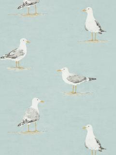 A series of friendly seagull characters perch in the sand in this charming, hand painted design.