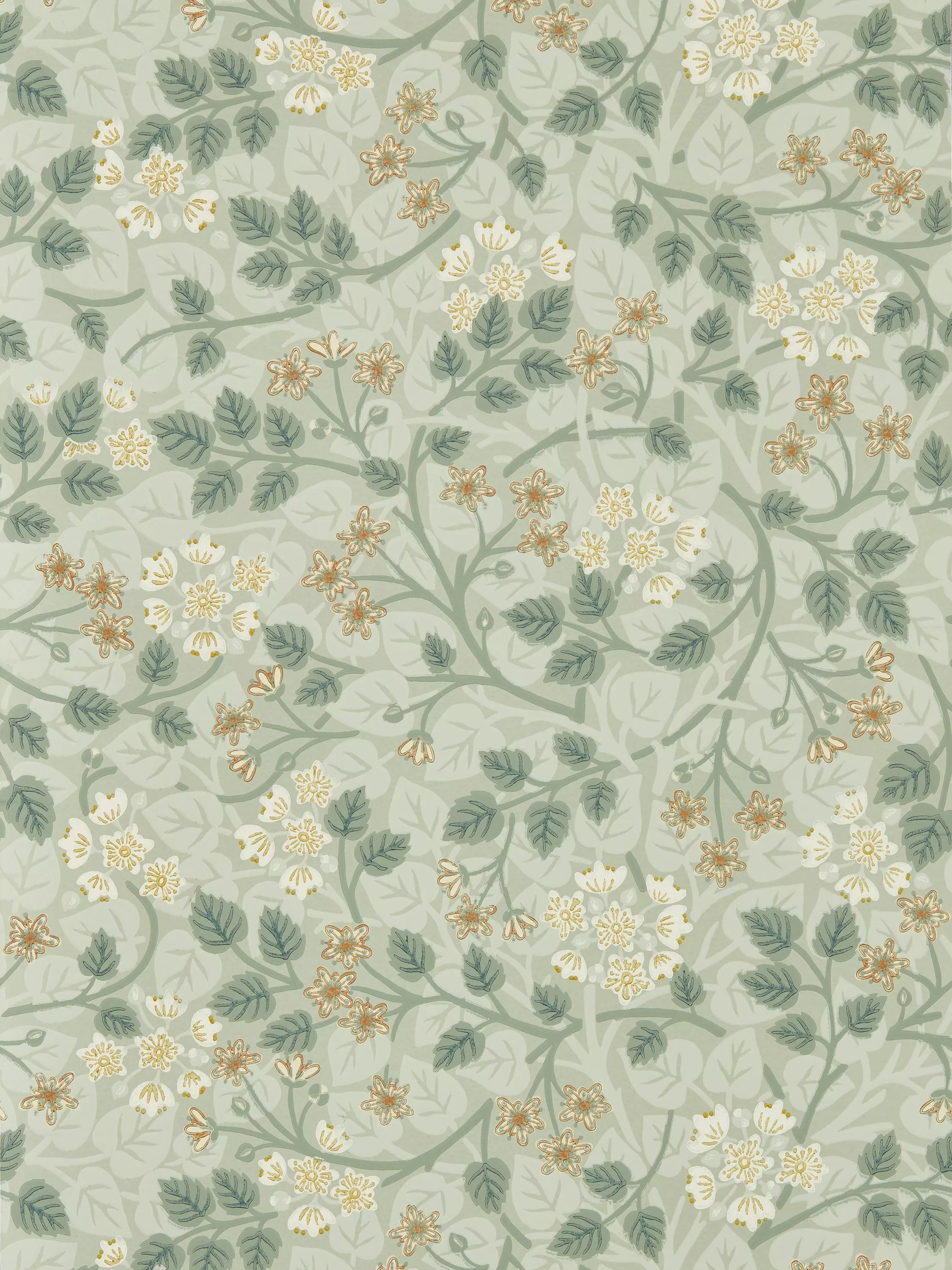 Pungent and intoxicating lime trees are prominent in Highgrove. Flowering in June and July they bring an unmistakable freshness to the garden. Silver Lime is inspired by an Arts & Crafts wallpaper document; this trailing design depicts heart-shaped leaves and stylised blossoms that have been surface printed to echo the finish of hand-block printing.