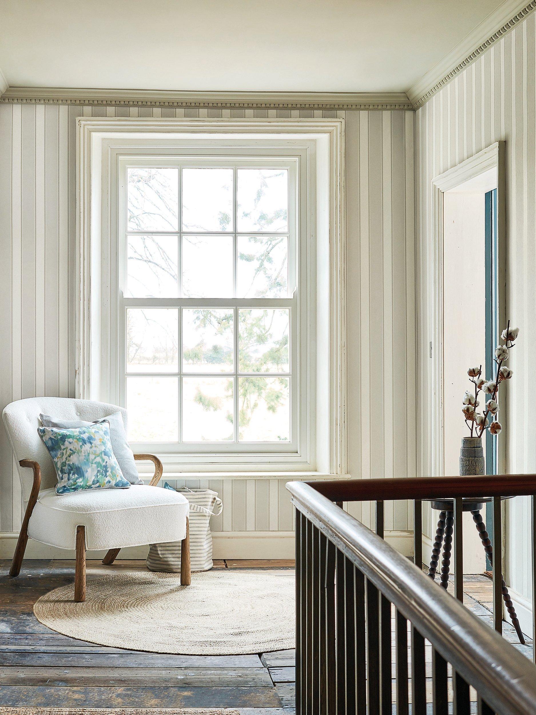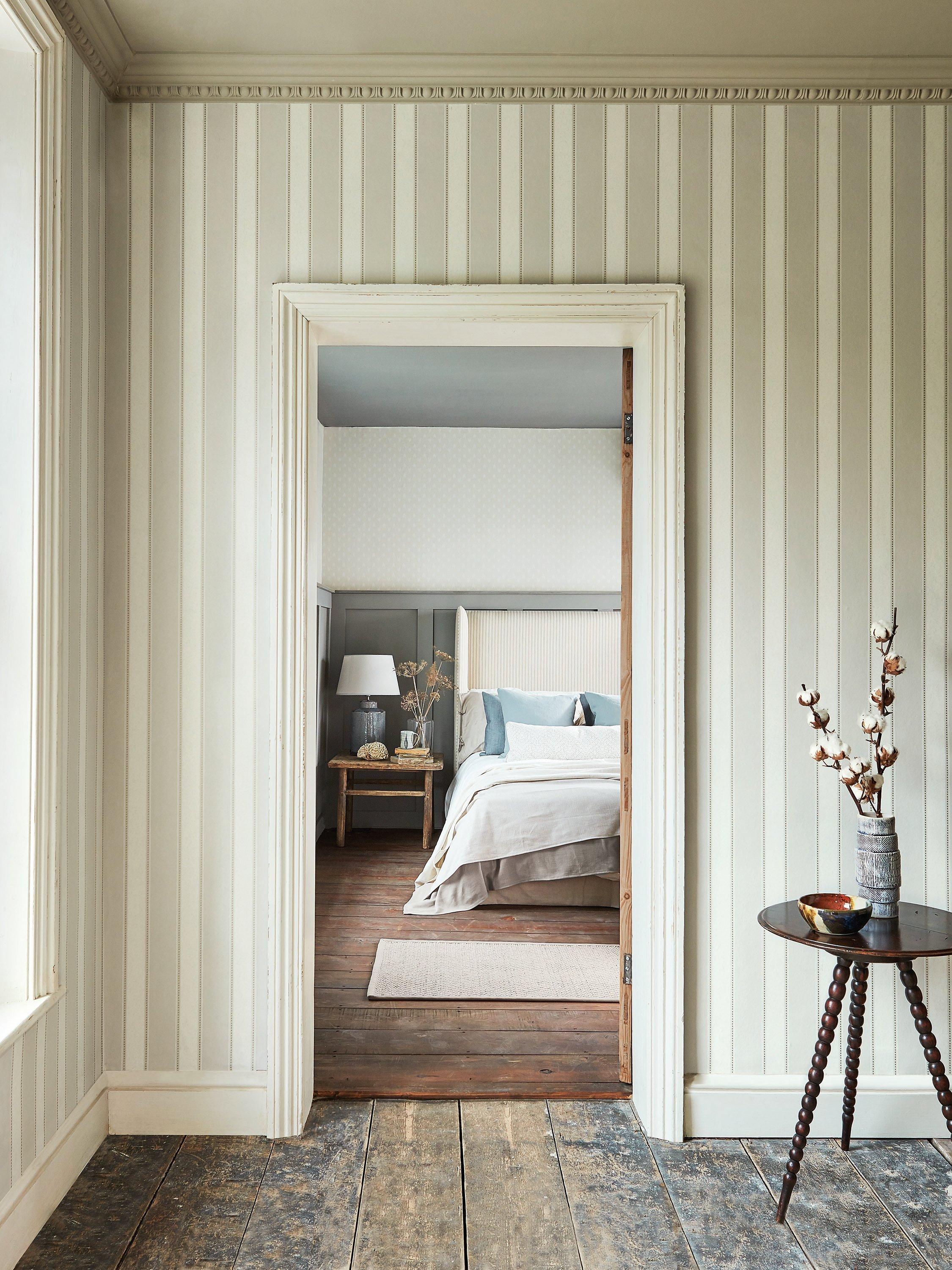 A decorative braid adds detail to this smart stripe wallpaper that's surface printed to give a textural handcrafted look. Some colourways have an elegant metallic stripe highlight.