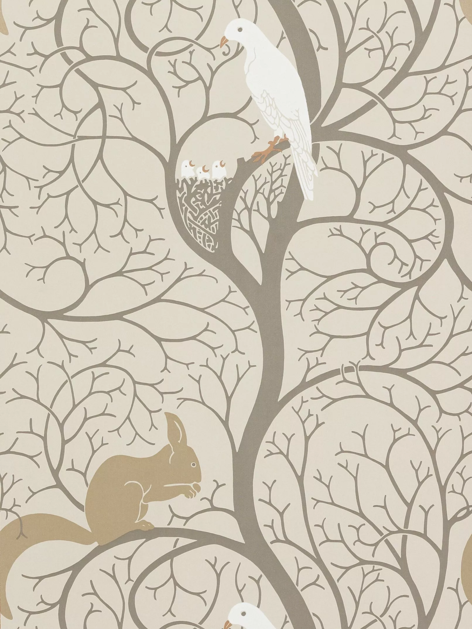 Squirrel and dove silhouette wallpaper, faithfully reproduced from an original design. Spongeable.
