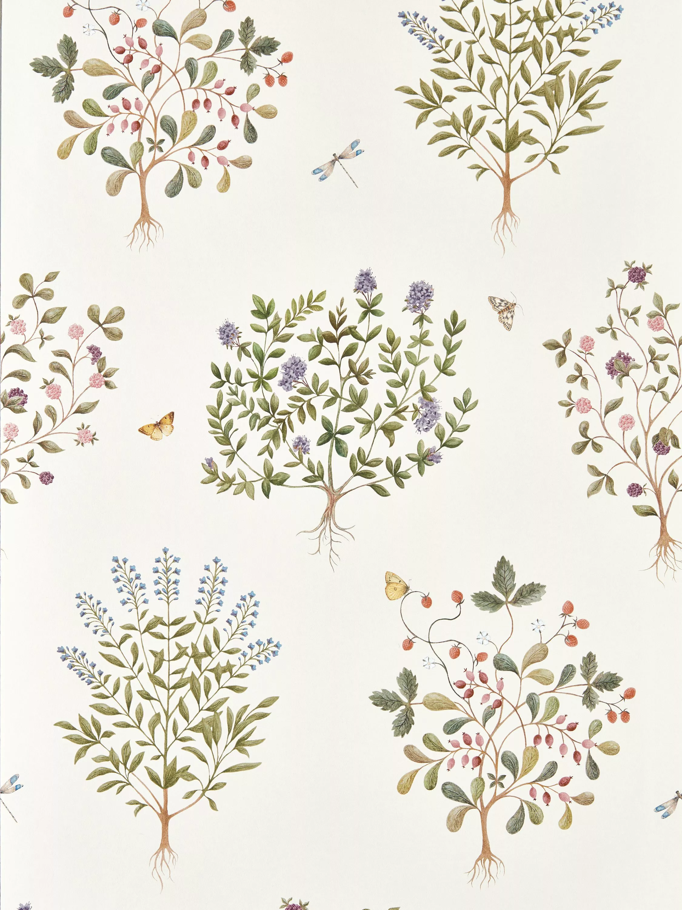 Inspired by the Thyme Walk, a magnificent avenue of natural wonderment, this wallpaper design depicts delicate sprays of herbs including varieties of thyme golden marjoram and lavender.