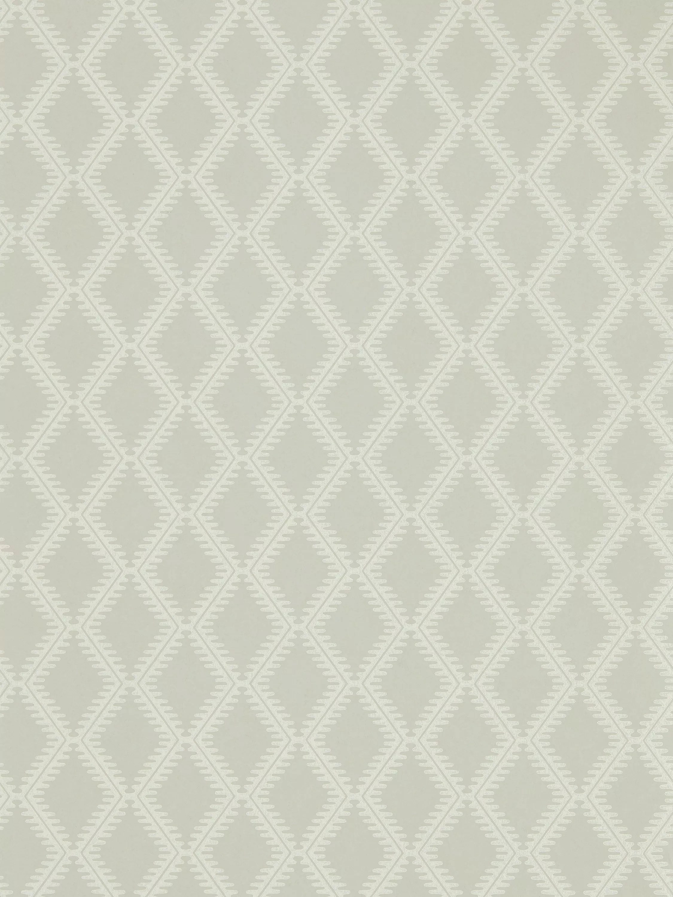 Whites and metallics combine to create this contemporary geometric trellis with a block printed effect adding textural detail and authenticity to the design's chalky ground.