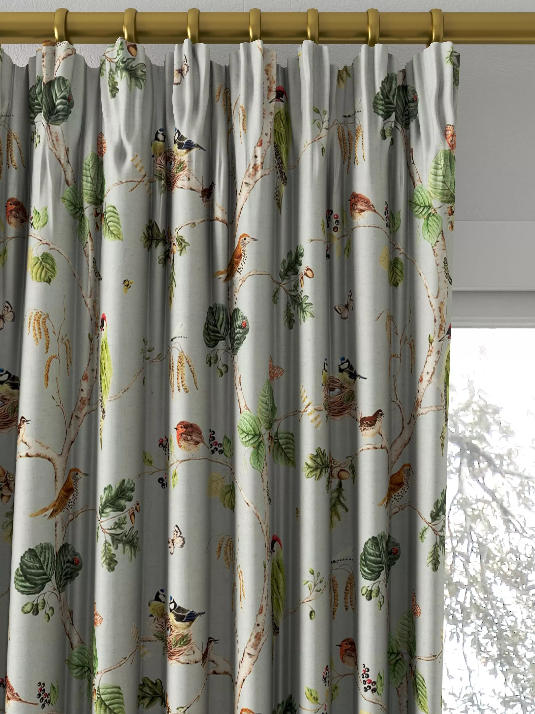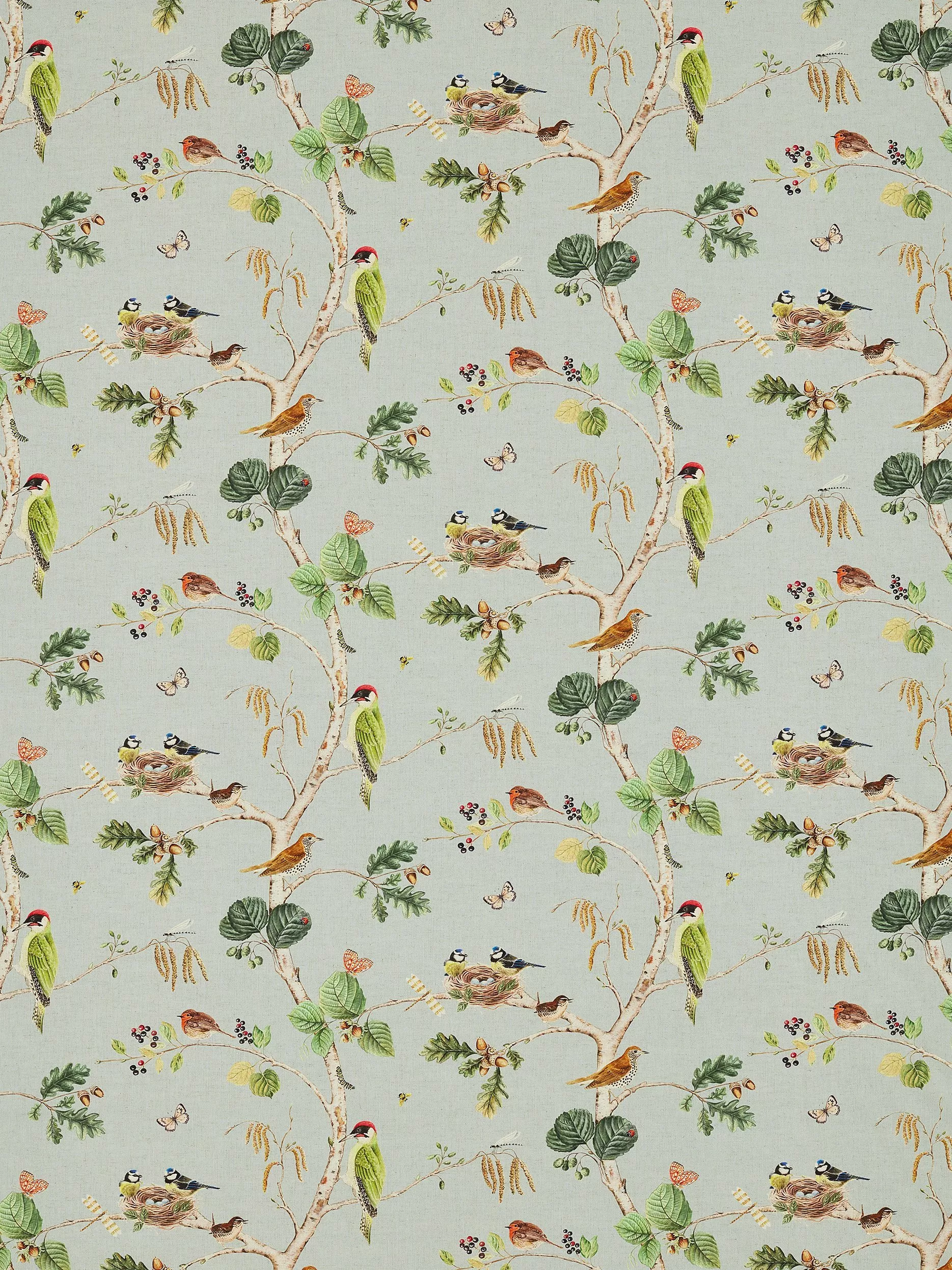 Inspired by an 18th-century painting of plants and animals, the Woodland Chorus fabric from Sanderson has an all-over pattern of British birds, butterflies and bees, making their homes amongst the tree branches. Drawn with exquisite detail and beautifully coloured the design brings woodland nature inside.