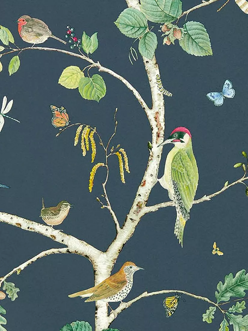 Exquisite depictions of British birds make their home on the delicate branches in this all-over patterned wallpaper. Reproduced in two new contemporary colourways, Woodland Chorus is one of Sanderson's bestselling designs.