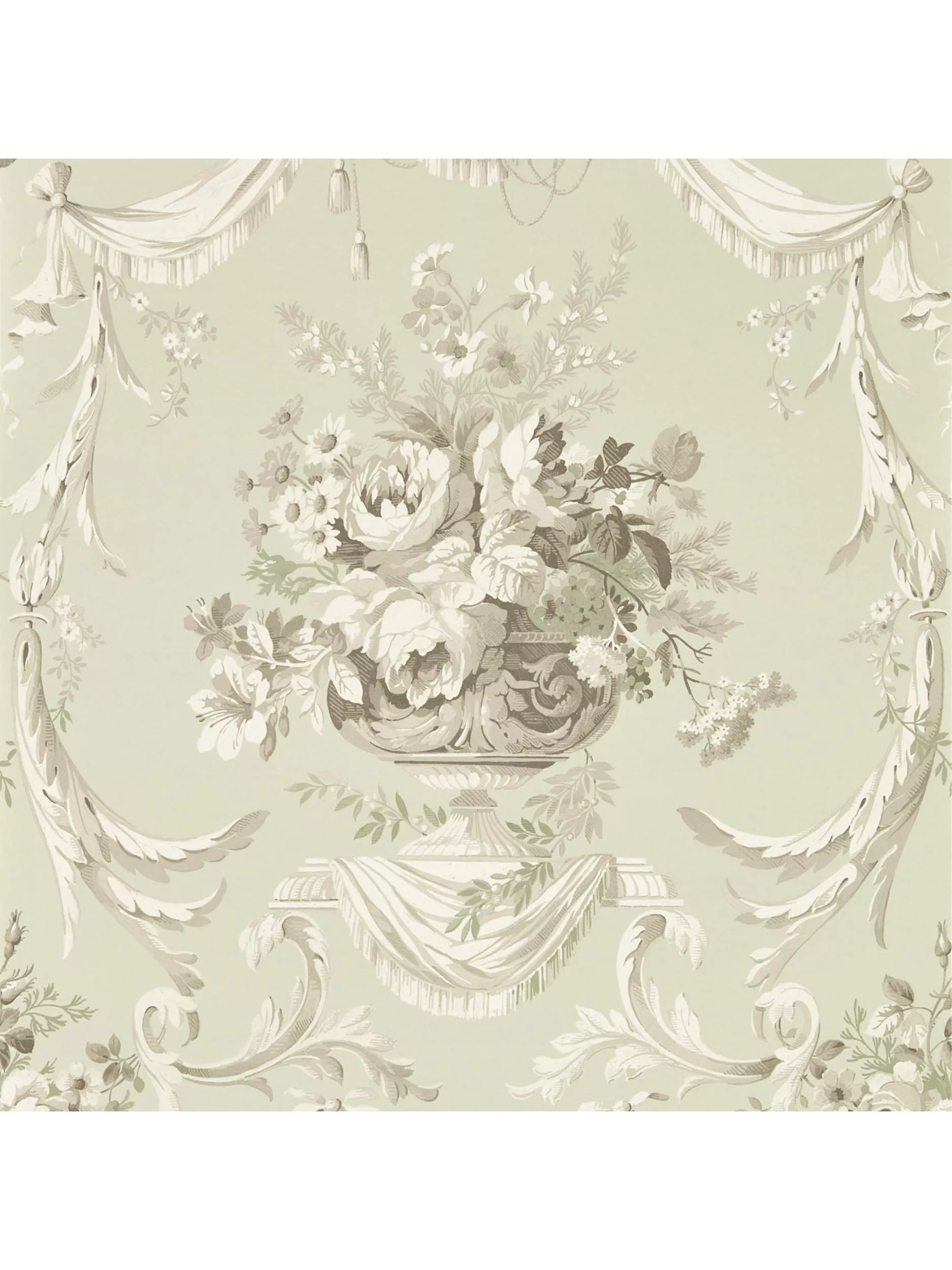 Andromeda, a beauty in Greek mythology, sees her cup overflowing with the eternal allure of florals. This print, created in a Trompe-l`oeil style, is from the Sanderson archive, with the decorative and laden cup a central icon of the wallpaper.