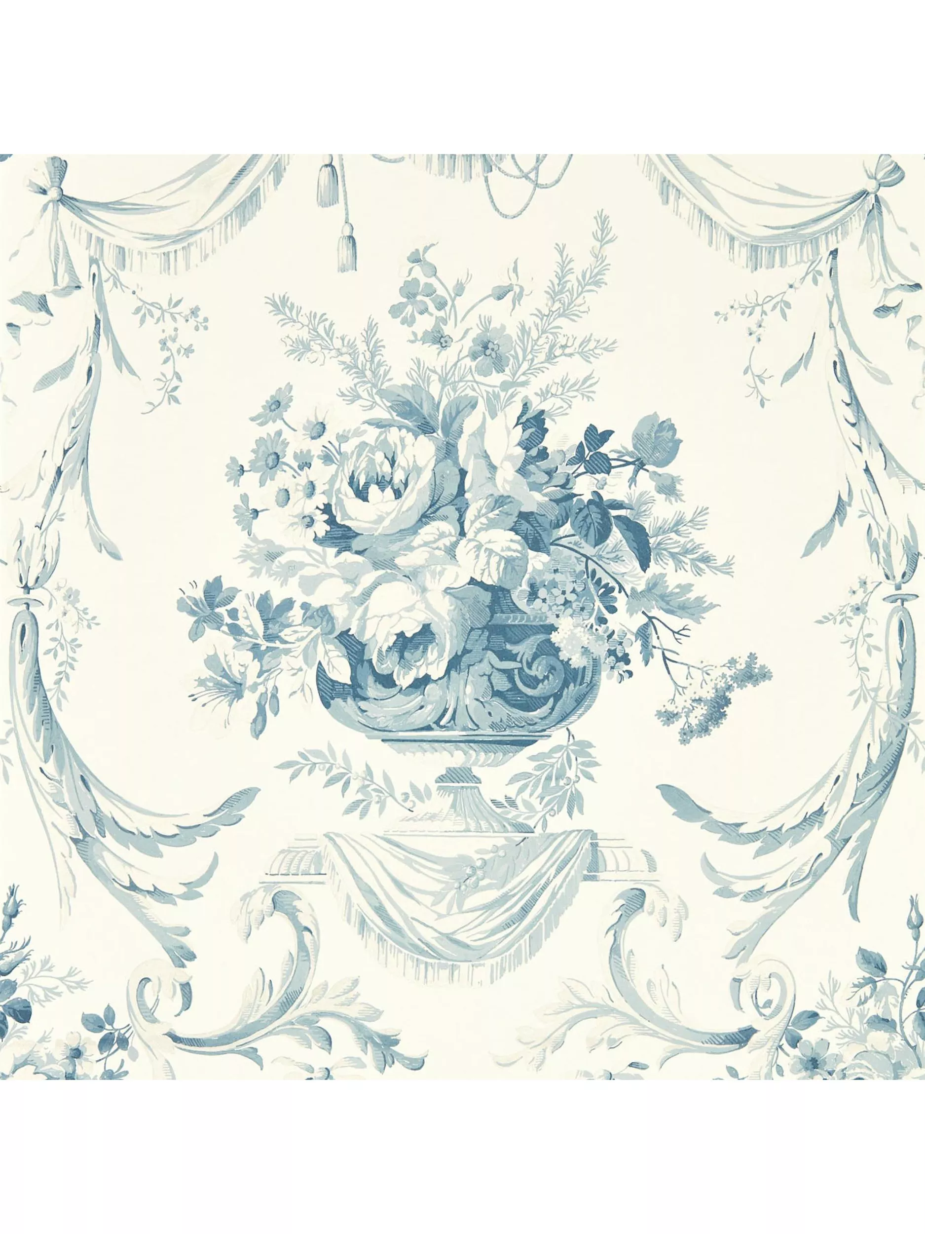 Andromeda, a beauty in Greek mythology, sees her cup overflowing with the eternal allure of florals. This print, created in a Trompe-l`oeil style, is from the Sanderson archive, with the decorative and laden cup a central icon of the wallpaper.