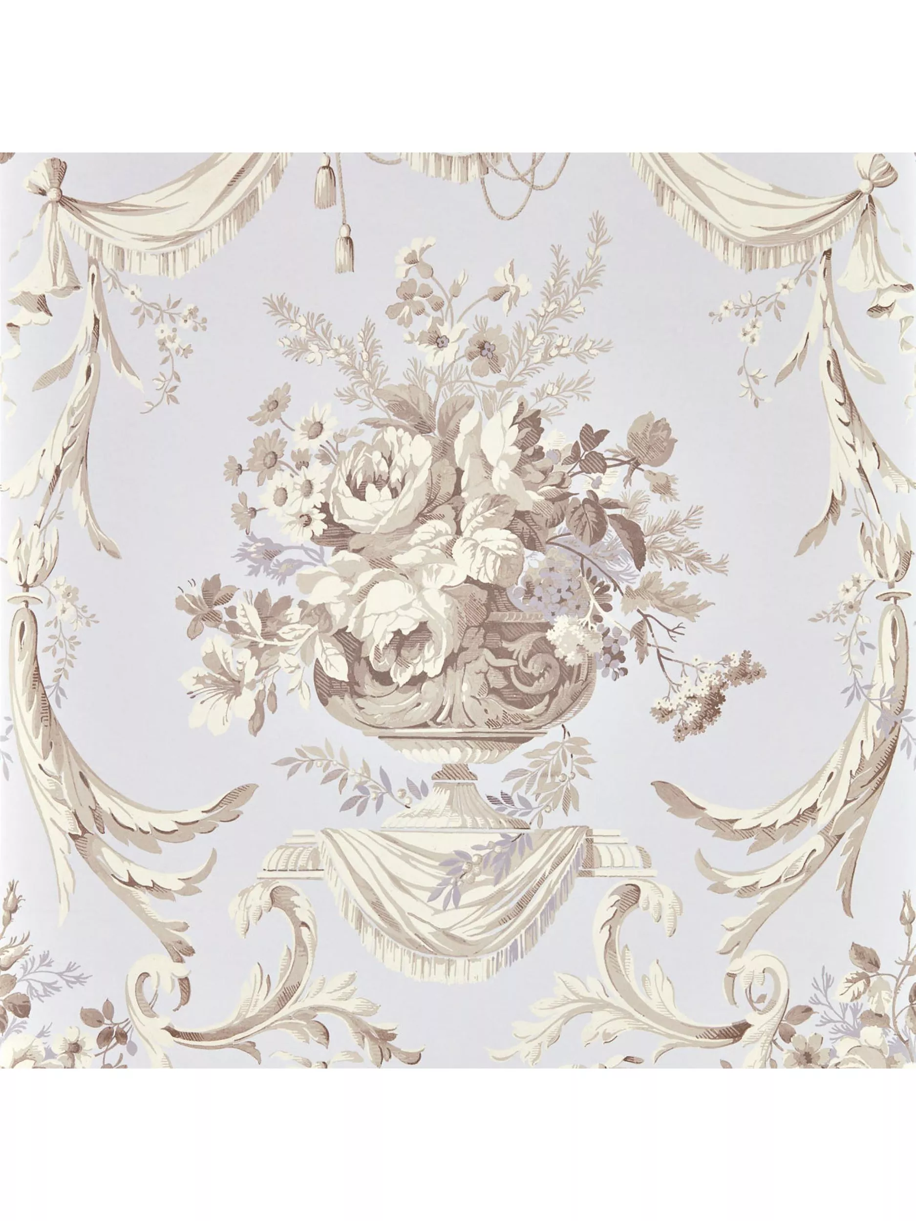 Andromeda, a beauty in Greek mythology, sees her cup overflowing with the eternal allure of florals. This print, created in a Trompe-l`oeil style, is from the Sanderson archive, with the decorative and laden cup a central icon of the wallpaper.