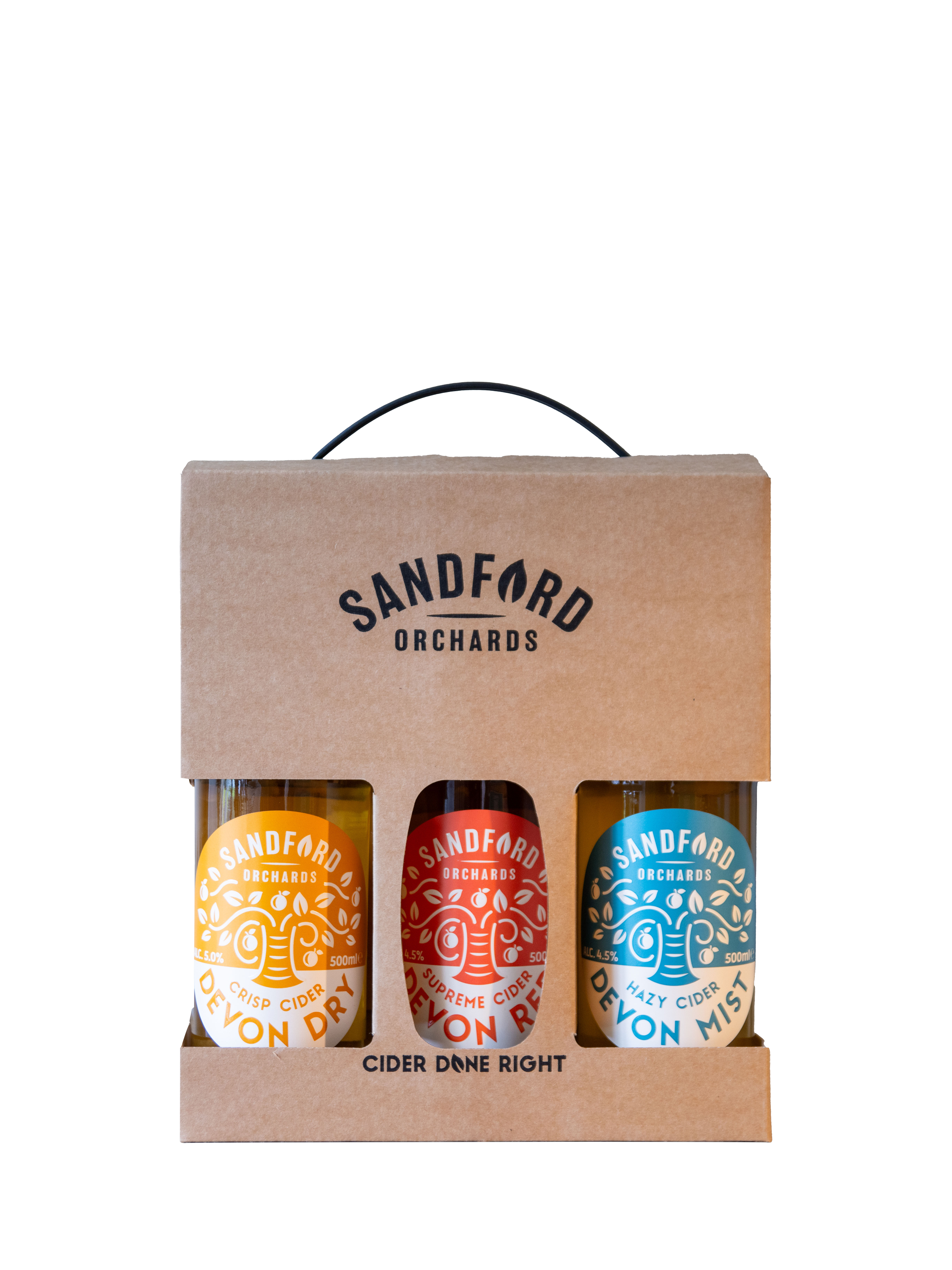 This stylish gift pack includes a selection of three beautifully balanced core range ciders: Devon Red, Devon Mist and Devon Dry.
