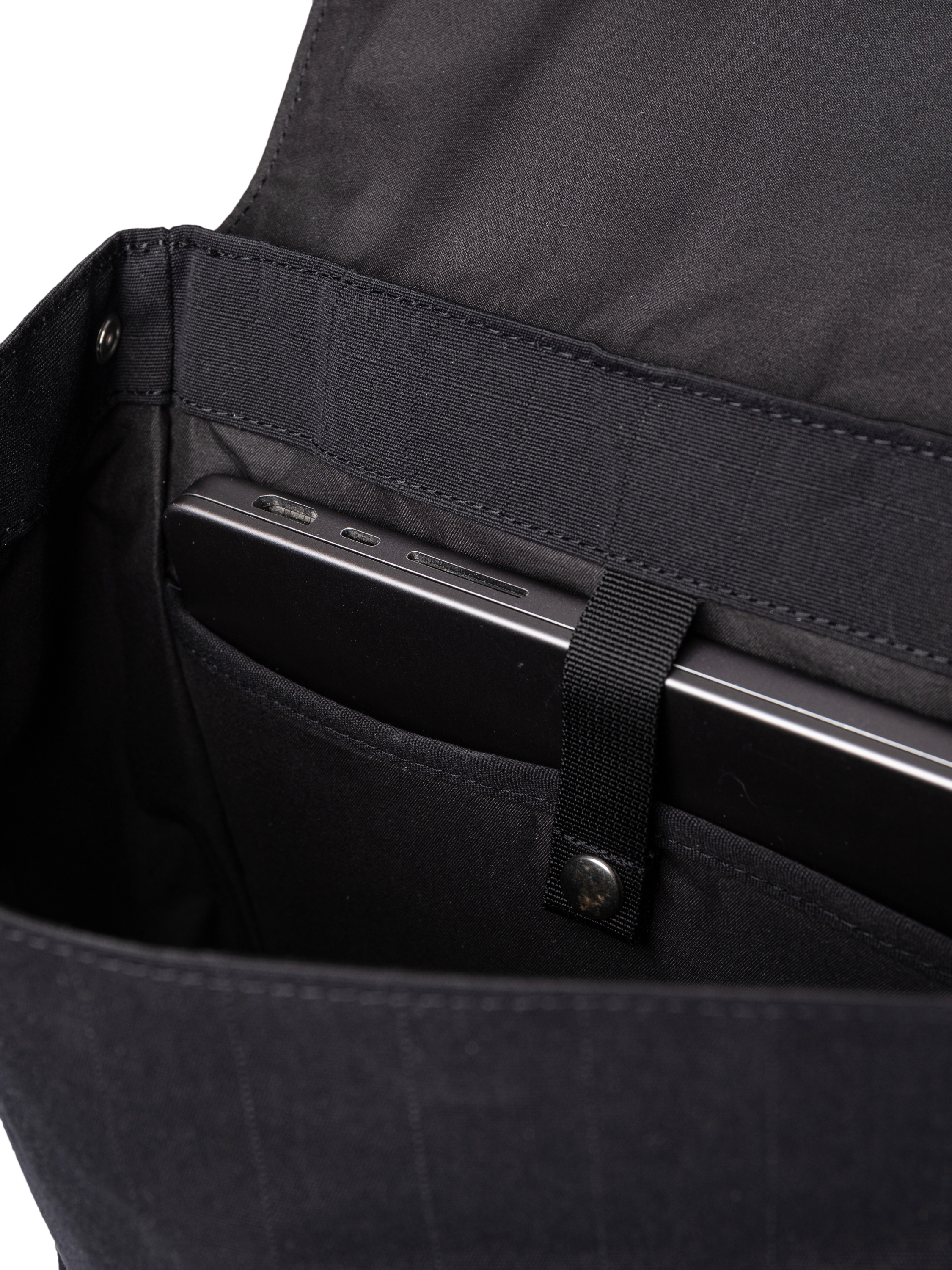 This backpack features a well-thought-out interior and exterior for effortless organization. A 14-inch laptop pocket (25x30 cm) ensures your tech is safely stored, while an inner zipper pocket is ideal for securing smaller valuables. On the outside, a discreet side zipper pocket provides quick access to frequently used items. With a total capacity of 12 litres, this backpack is compact yet highly functional. It is featured with press buttons in the main compartment to maintain a perfect shape when not fully packed. When fully packed - open them to get some more space.