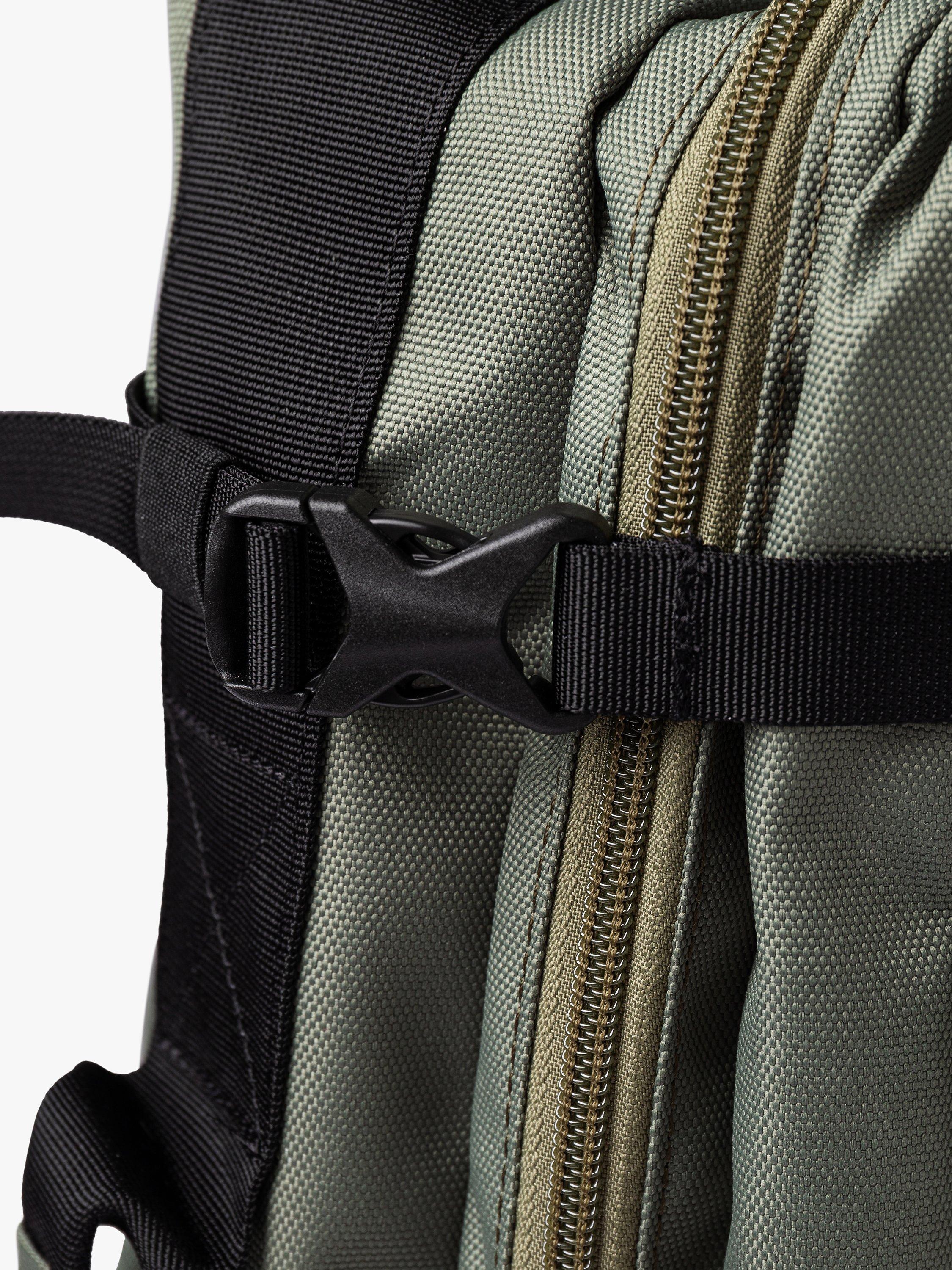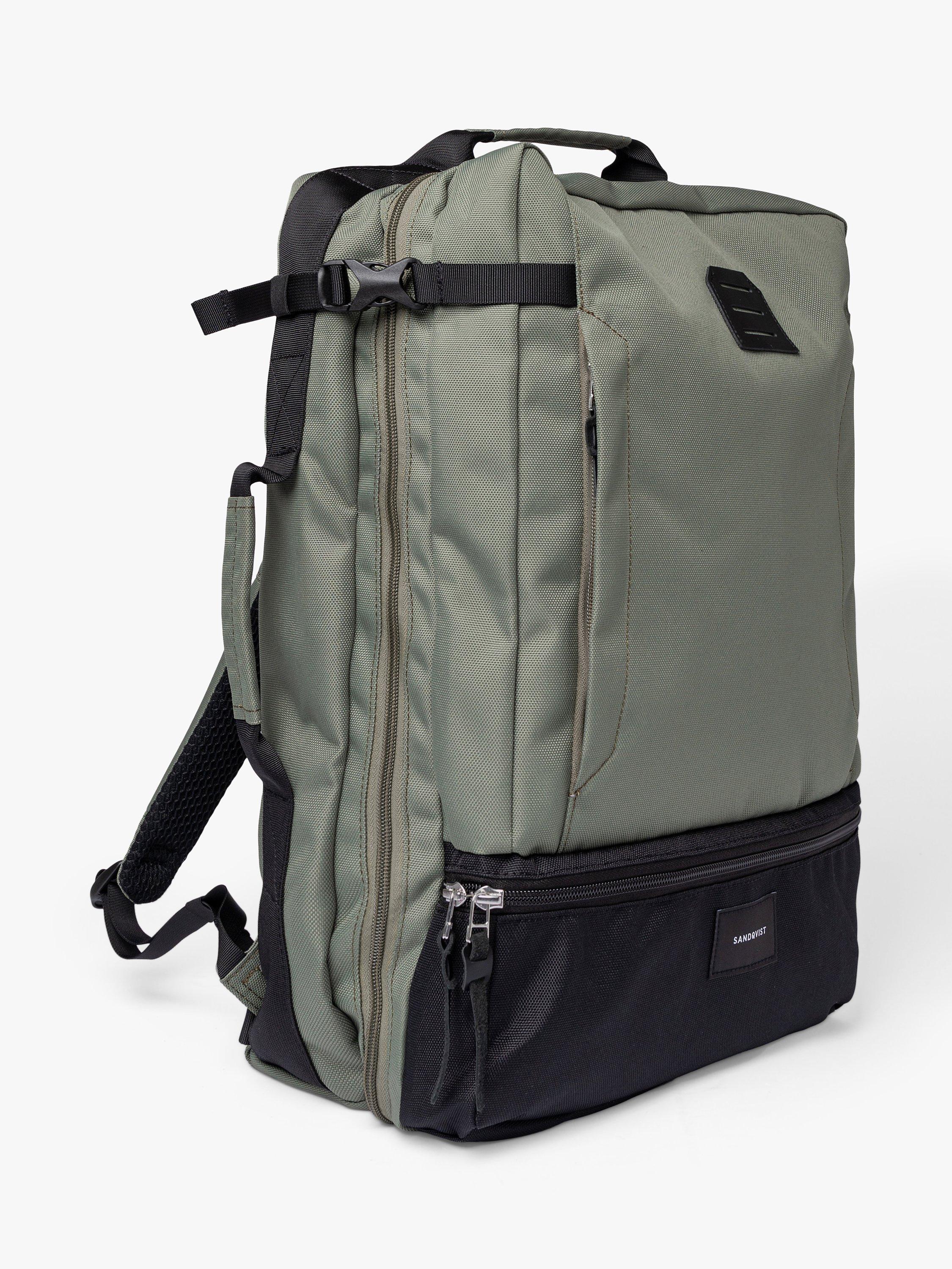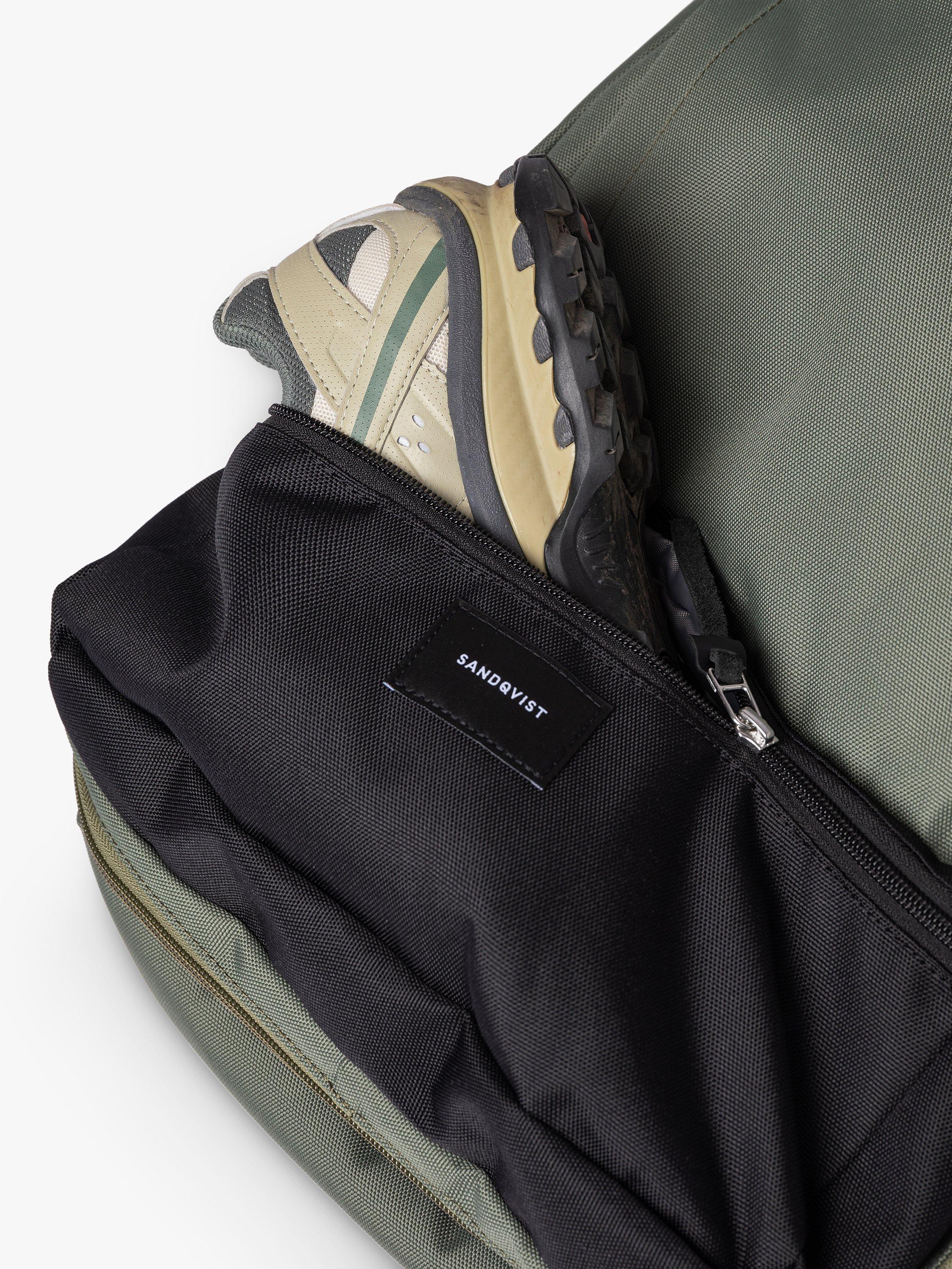 Water-resistant zipper backpack constructed from 100% recycled polyester. It features a 16" laptop compartment, a shoe compartment, and can carry up to 34L. The bag is designed with a zip-around opening for easy packing. A spacious backpack perfect for daily commutes or weekend travels.