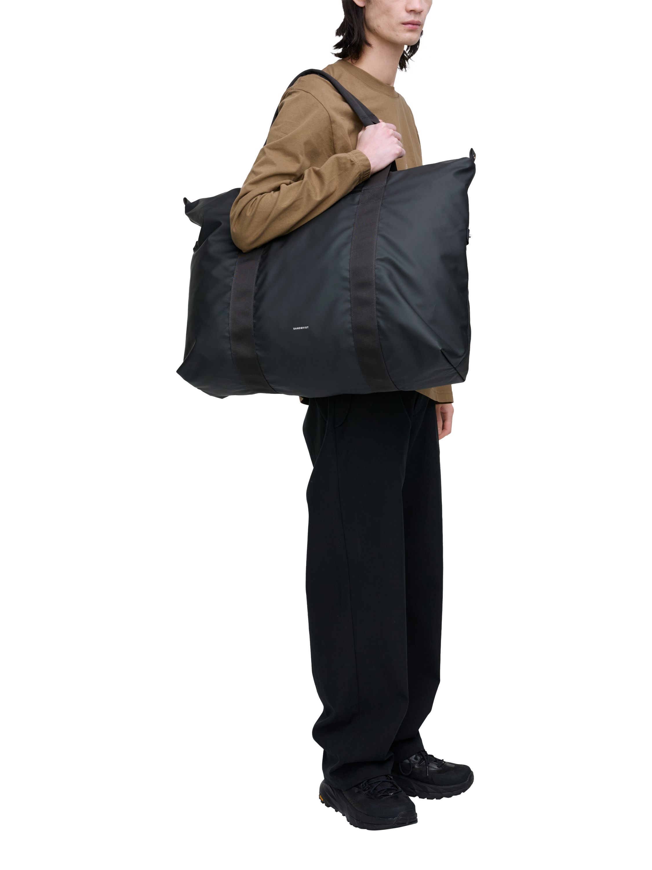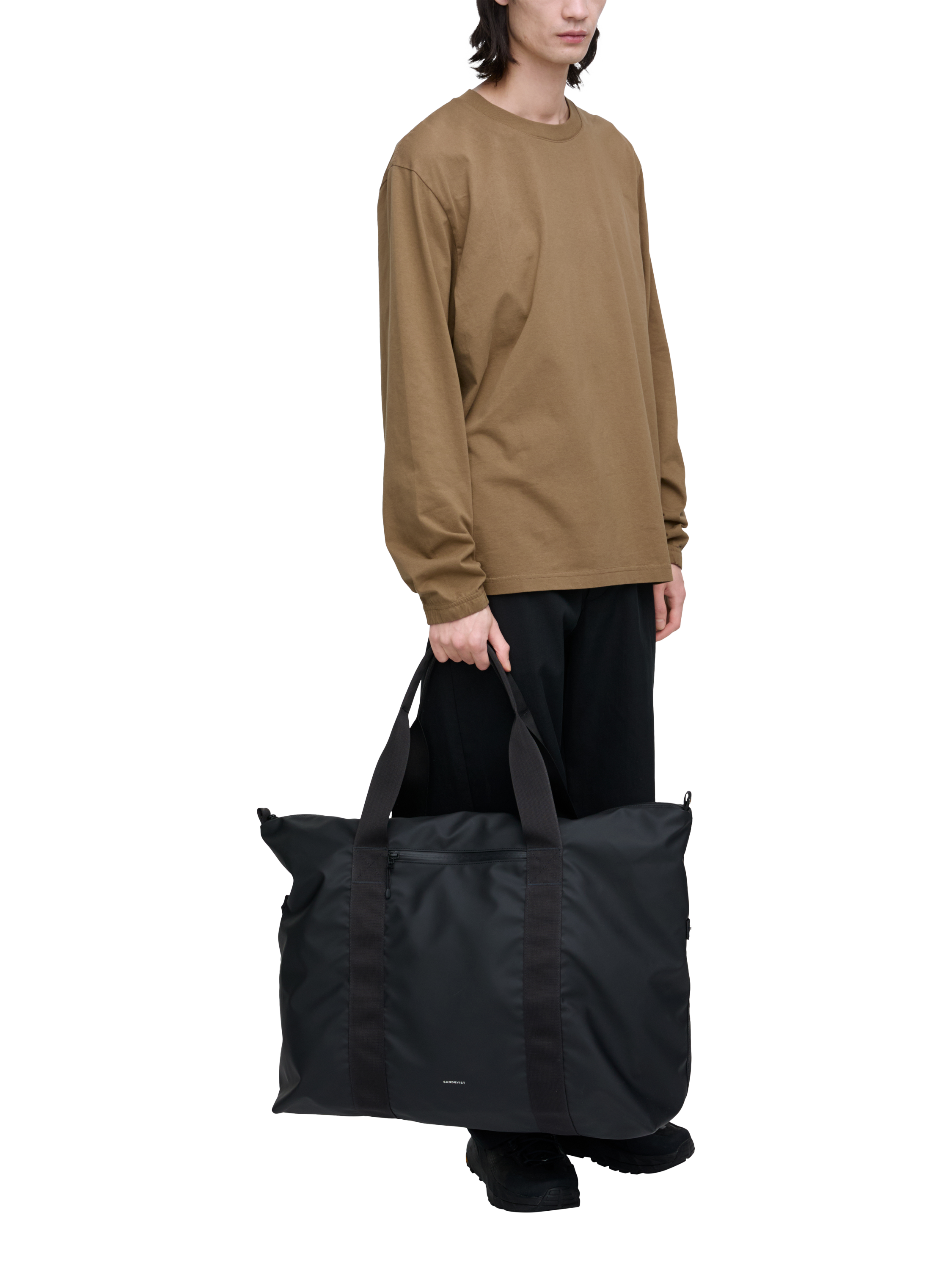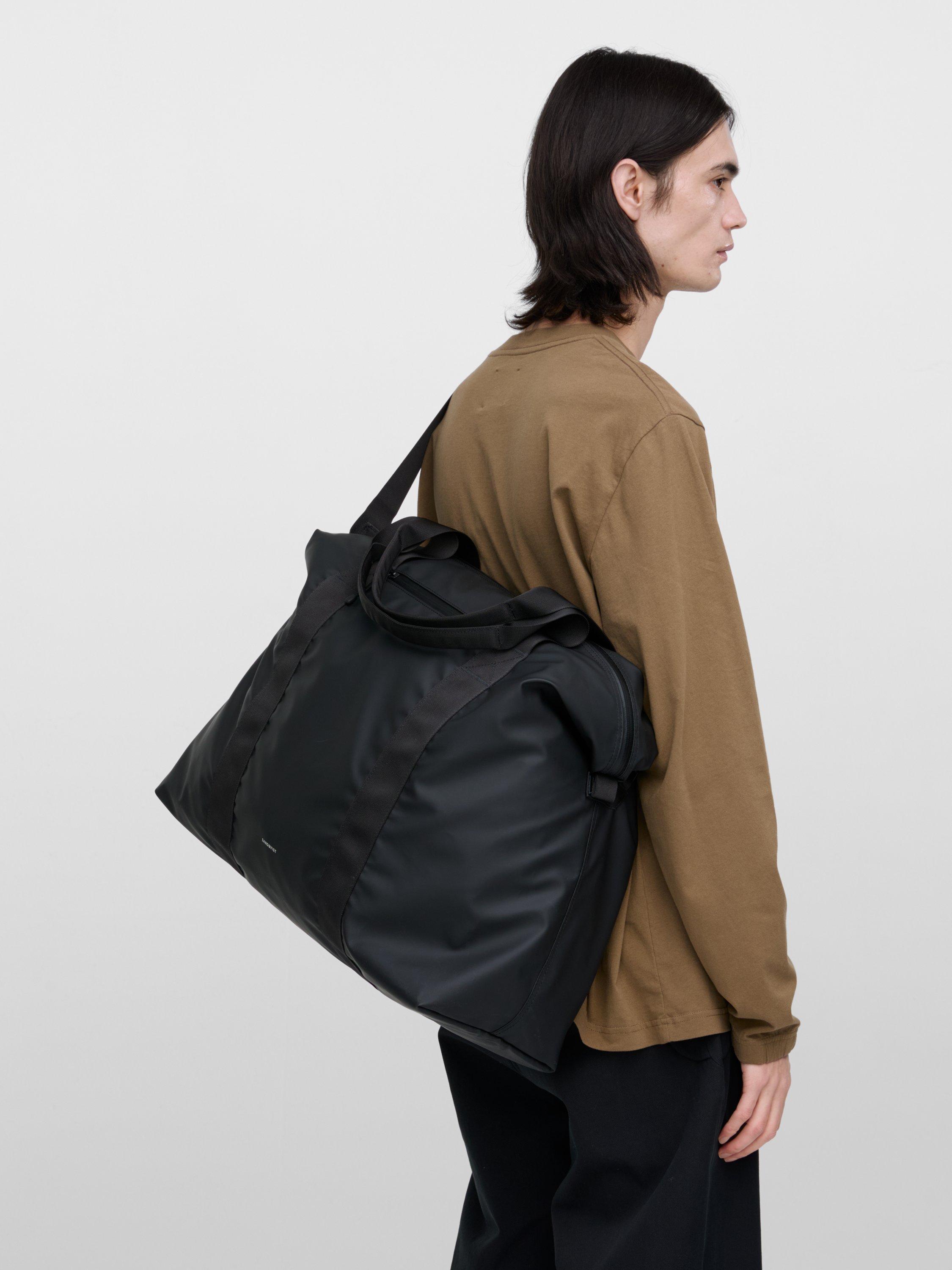 A water-resistant weekender bag that can be worn over the shoulder, crossbody, or carried by the handle. Features a 16" laptop pocket and an internal zip pocket.
