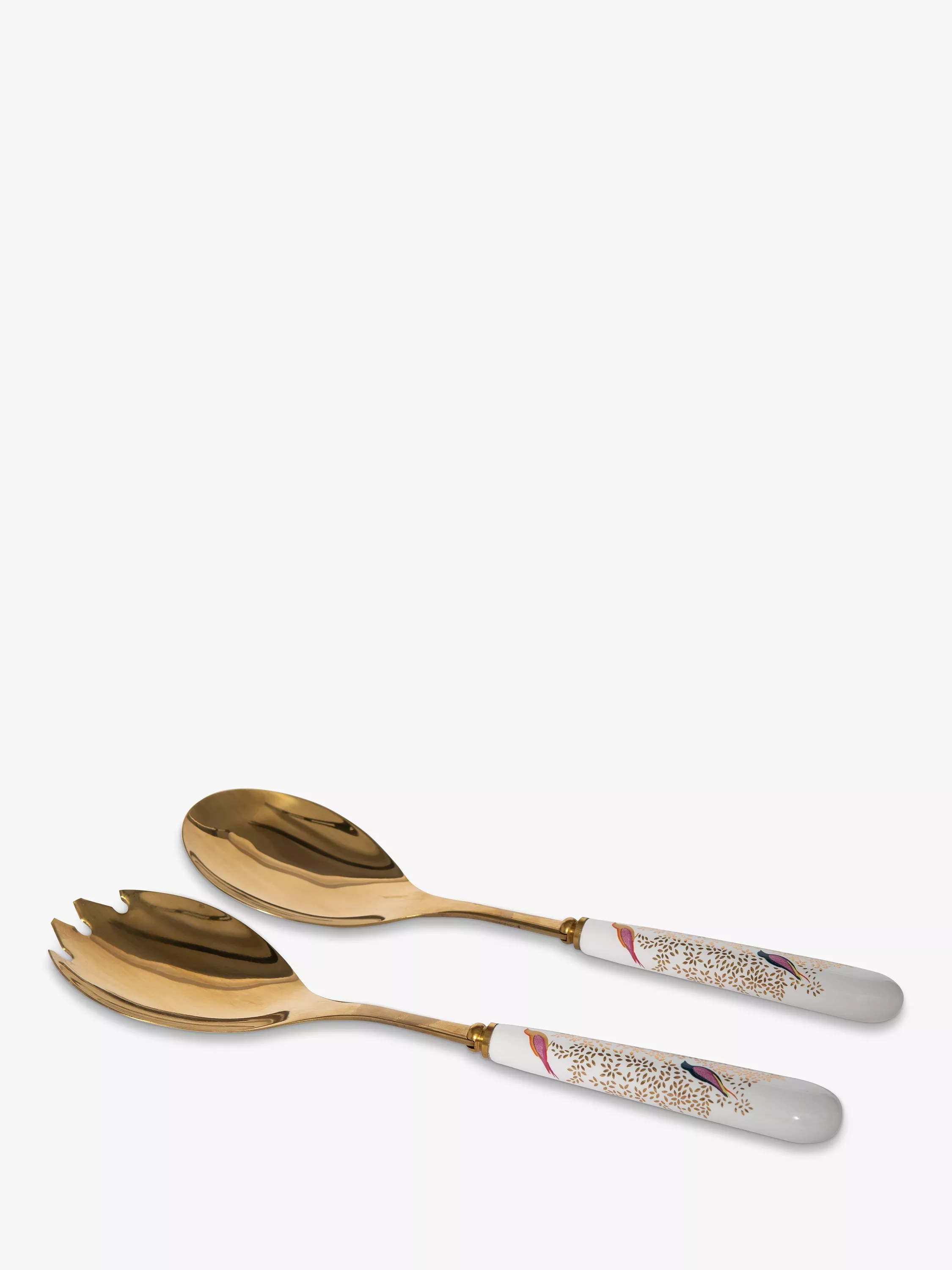 Enjoy delicious salads in style with this pair of salad servers from the Sara Miller London Portmeirion Chelsea collection. With a gold-coloured stainless steel spoon and fork, this set is the perfect finishing touch to your table.
