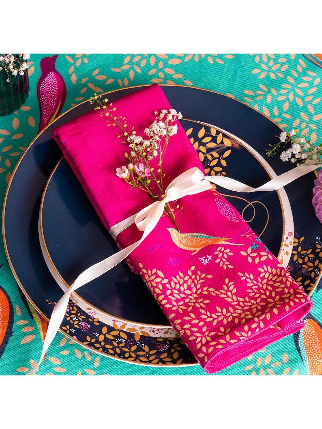 Embrace the beauty of nature and add a touch of vibrant charm to your table with this pair of Sara Miller London Chelsea Birds Napkins from Portmeirion. A statement piece for your table, these cotton napkins feature an eye-catching design of colourful birds and leaves. Machine washable.