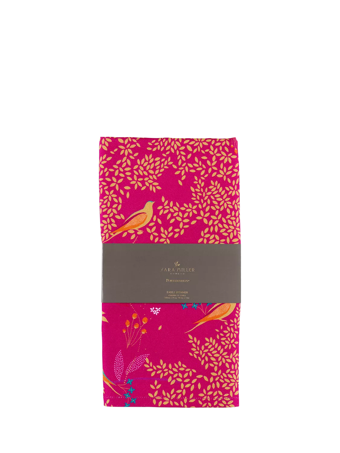 Add a touch of playful sophistication to your setting with this Sara Miller London Chelsea Birds Table Runner from Portmeirion. It showcases a beautiful print of birds nestled within an enchanted garden. Made from 100% cotton, the runner is machine washable for easy cleaning.
