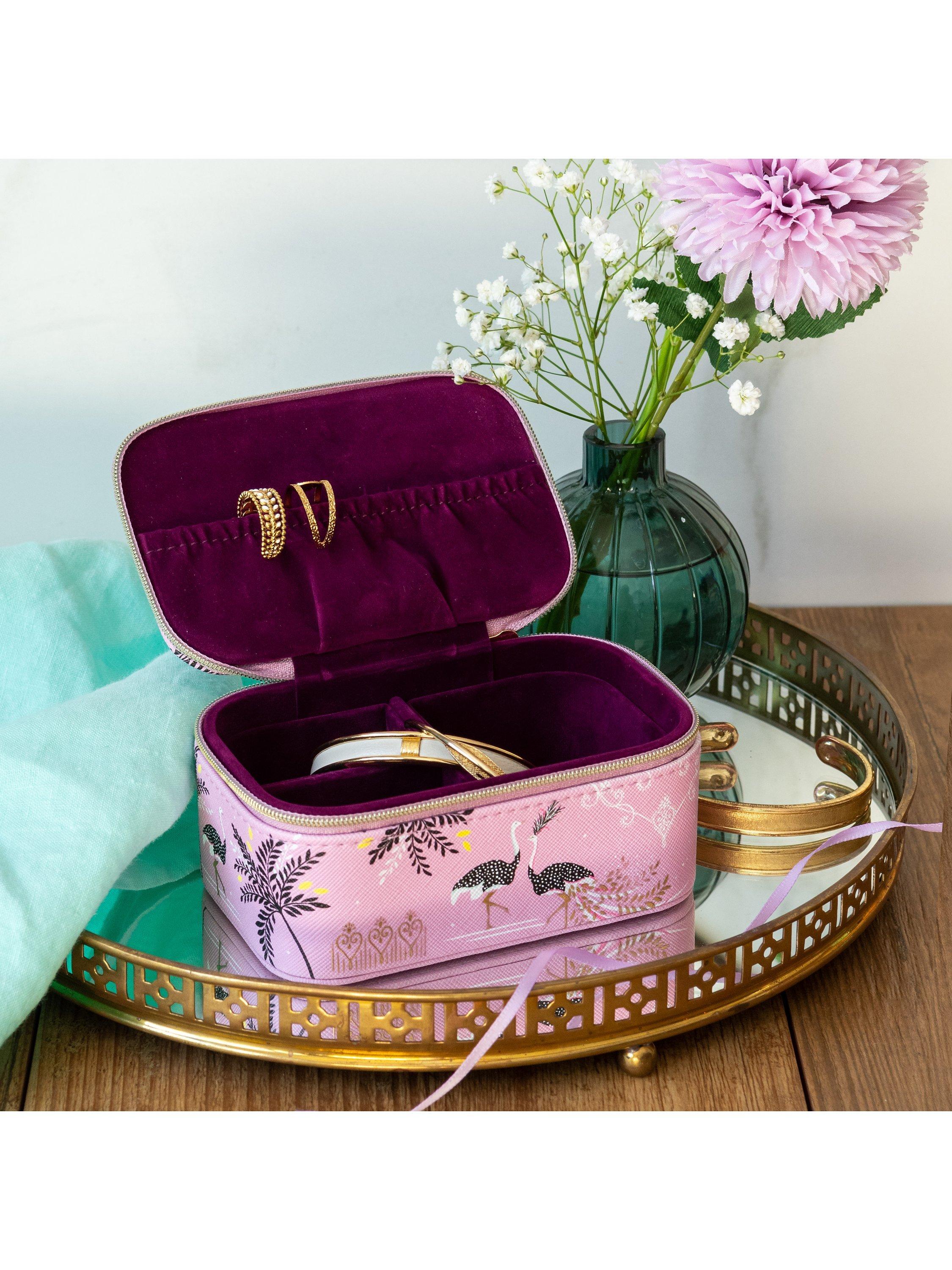 A mini luxurious zip case for keeping all your precious jewellery together while you travel. With gold details and soft velvet interior.