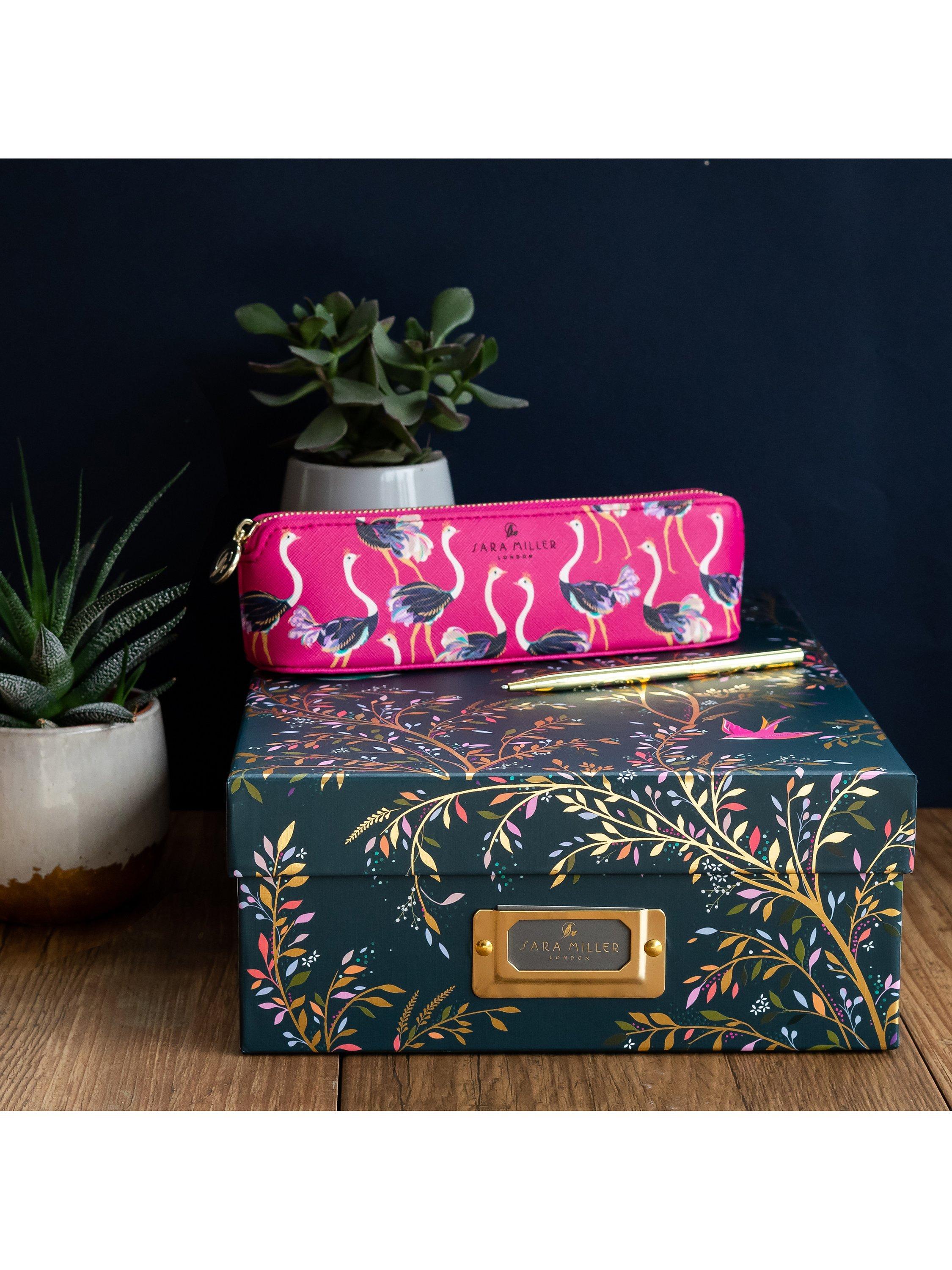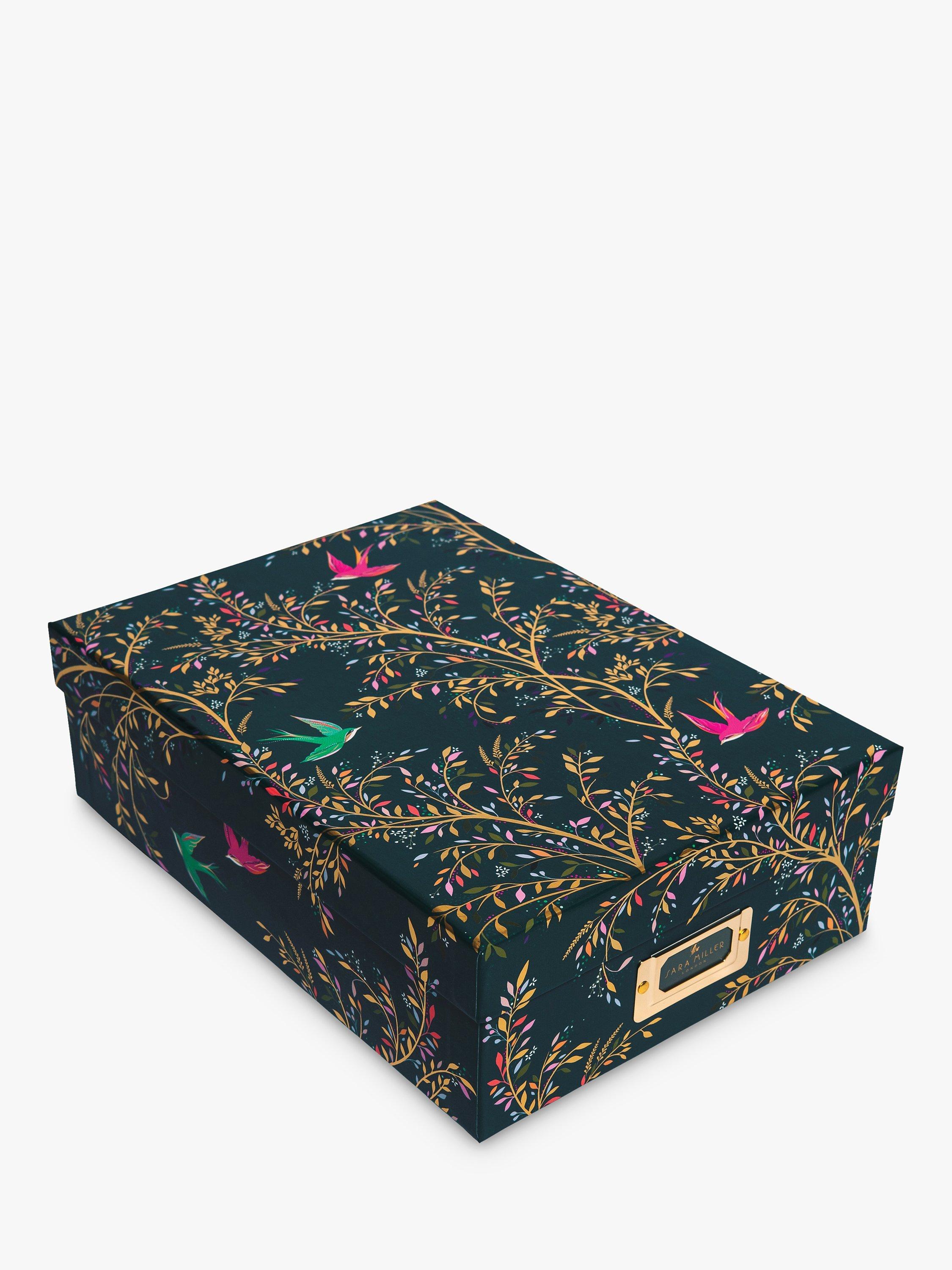 Add some colour and style to your home office with this elegant Sara miller London A4 storage box. Featuring beautiful swallows flying effortlessly through the branches of a willow tree embellished with gold foil leaves.