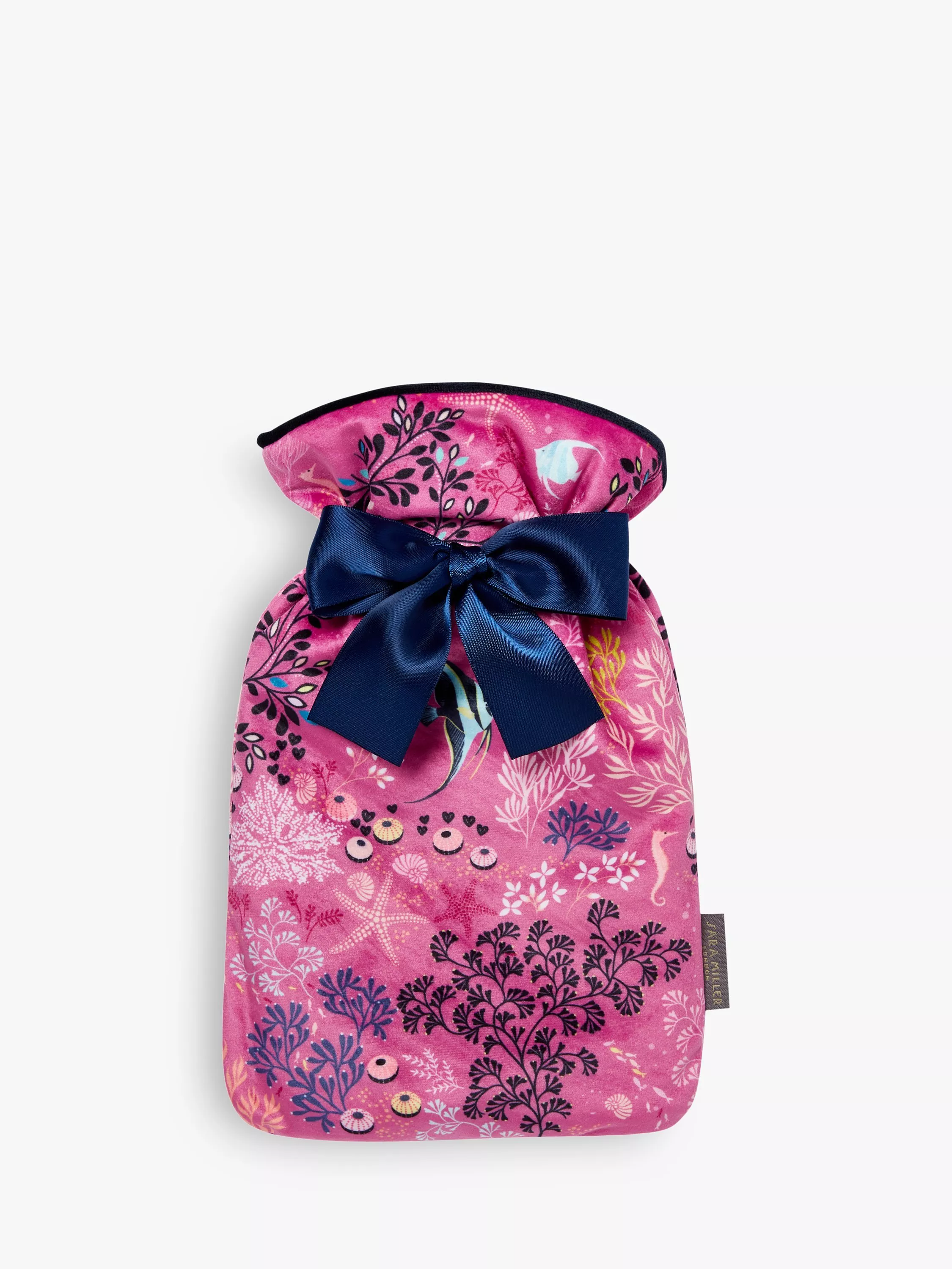 Sara Miller brings her enchanting underwater world to keeping warm with this beautiful and stylish, velvet hot water bottle cover featuring a unique dreamlike seascape, complete with a 1 litre hottie inside. Made from velvet, the cover is luxuriously soft and features delicate seahorses and angelfish in an eye-catching palette of pink and turquoise.