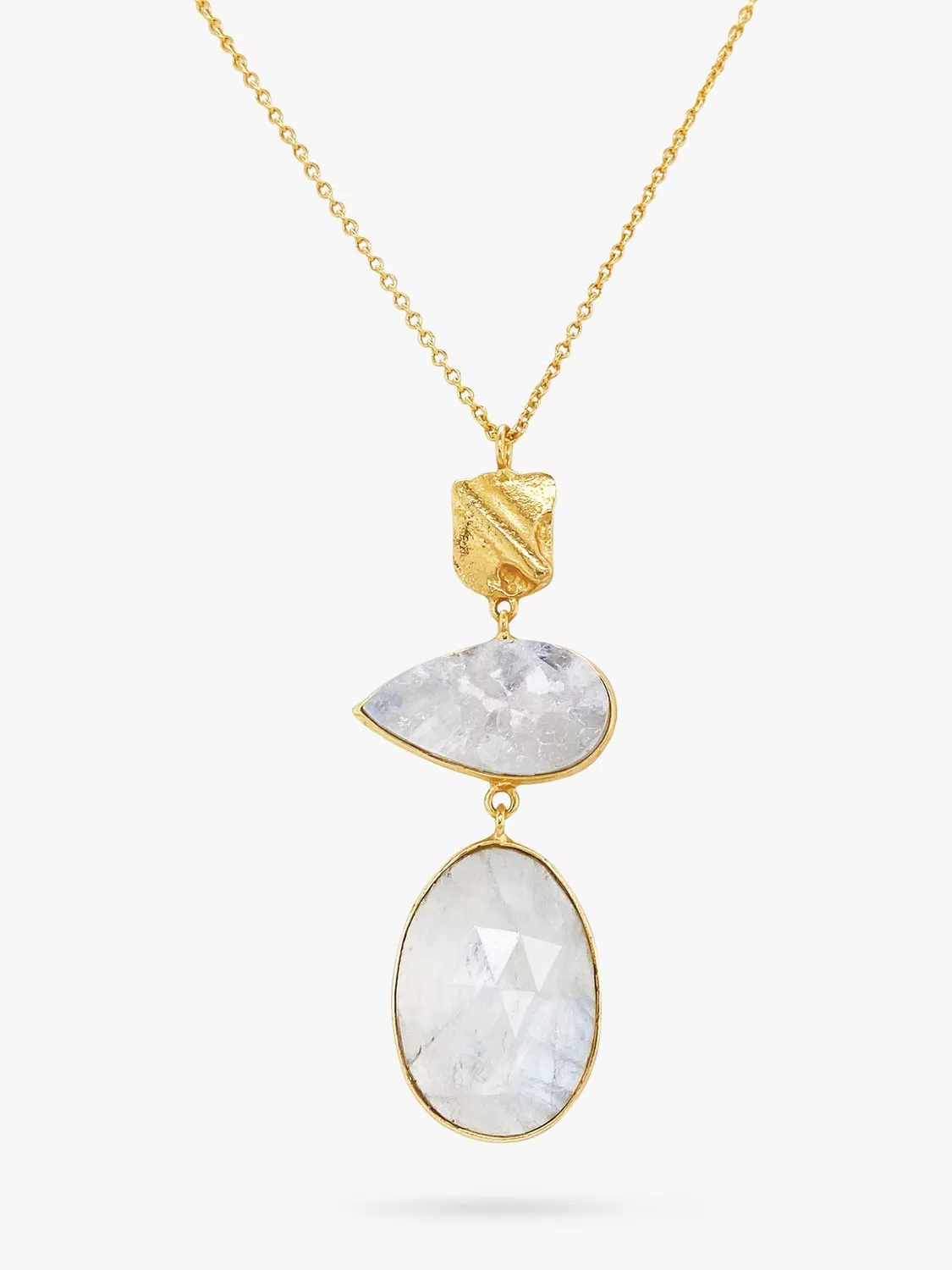 Decorating your décolletage, this pendant necklace from Sarah Alexander is set with beautiful iridescent moonstone.