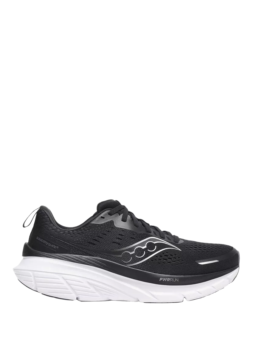 The Guide 18 is our core maximum cushioning training shoe. Built for comfort and protection, the Guide 18 is a cushioned everyday trainer that combines our soft and responsive PWRRUN foam with our exclusive Center Path Technology that keeps the foot centred and supported to deliver a best in class underfoot experience by maintaining a standard centerline, increasing the height of the sidewalls and building it on a rocker shape to ease toe off.