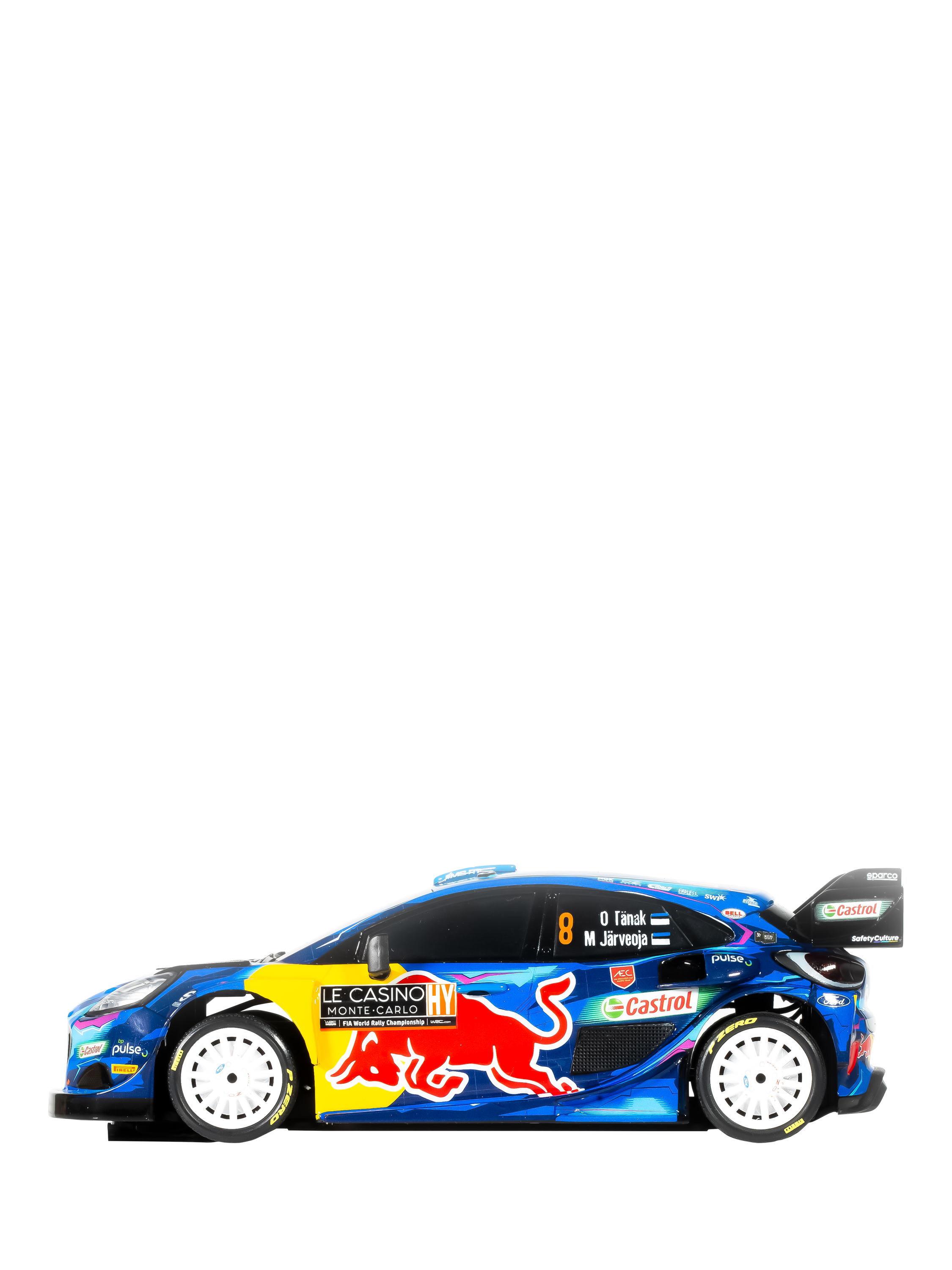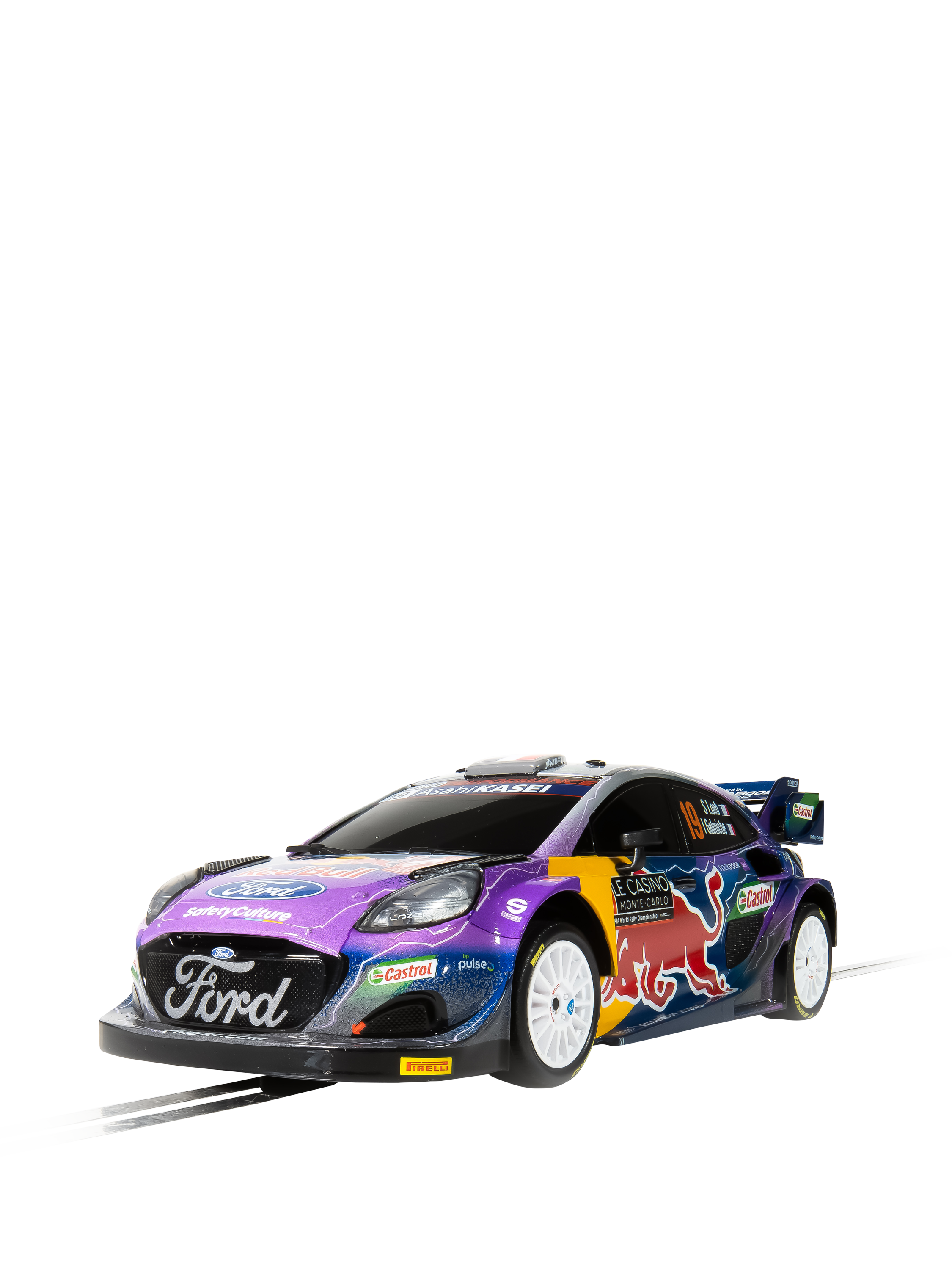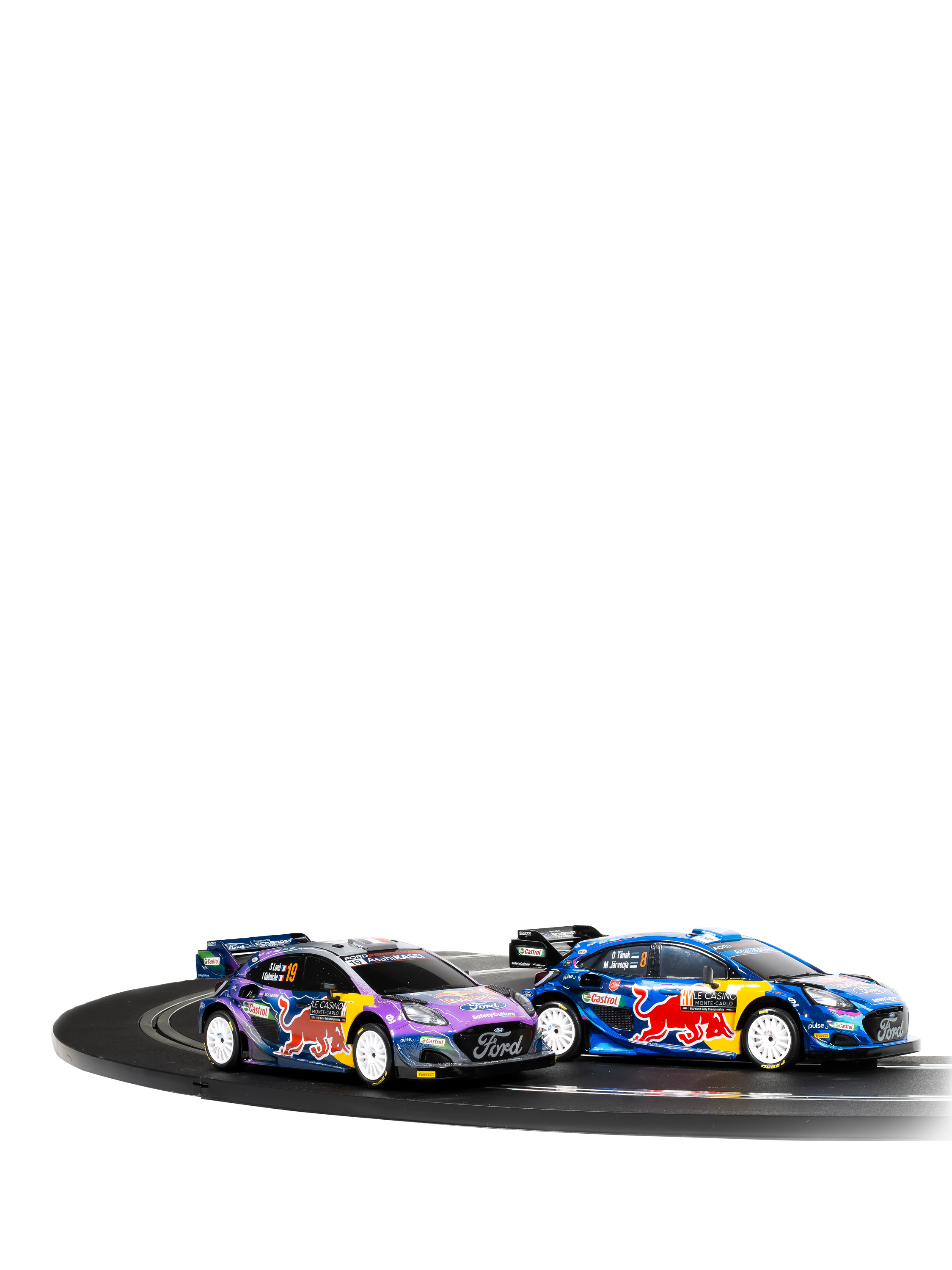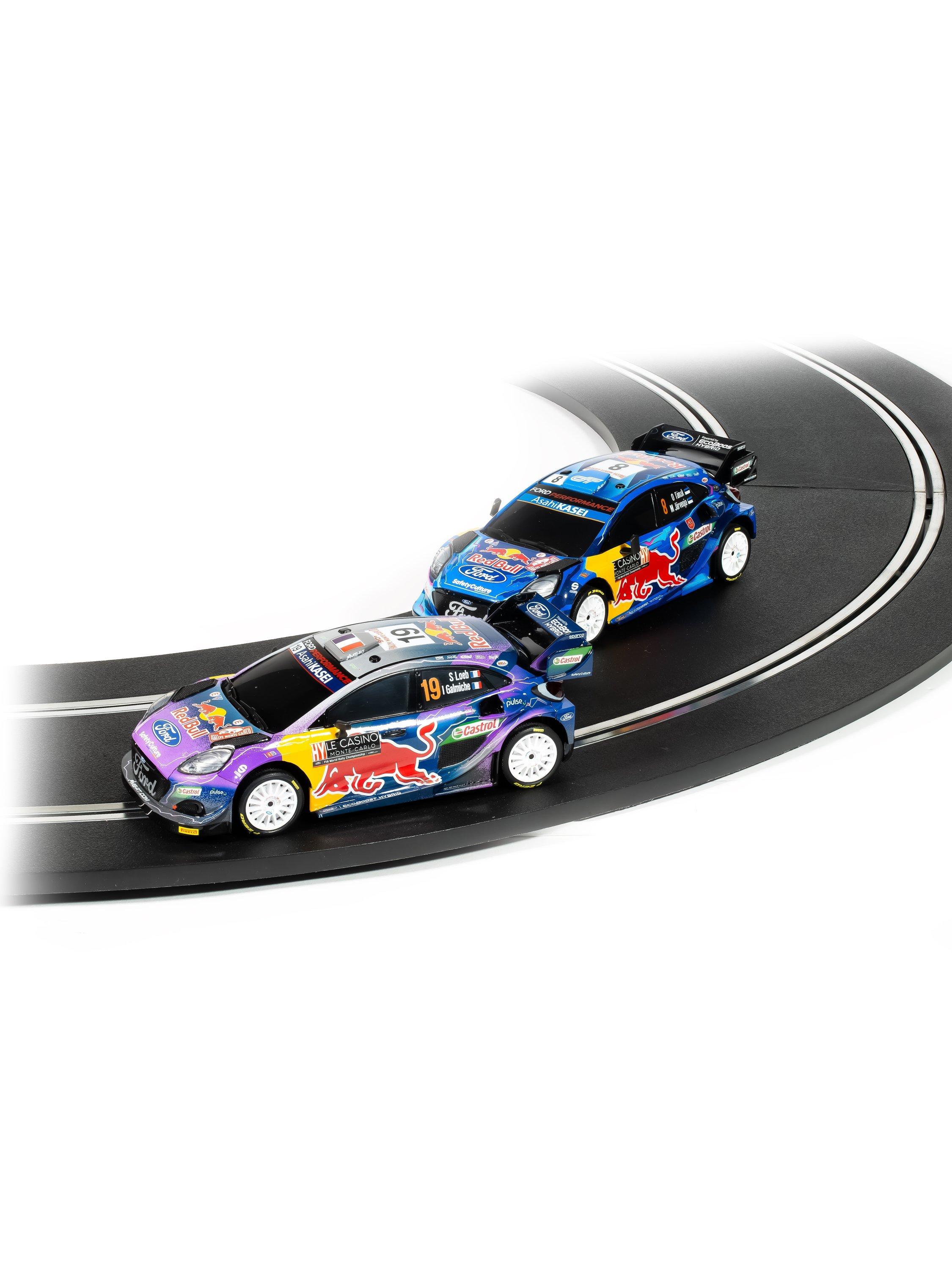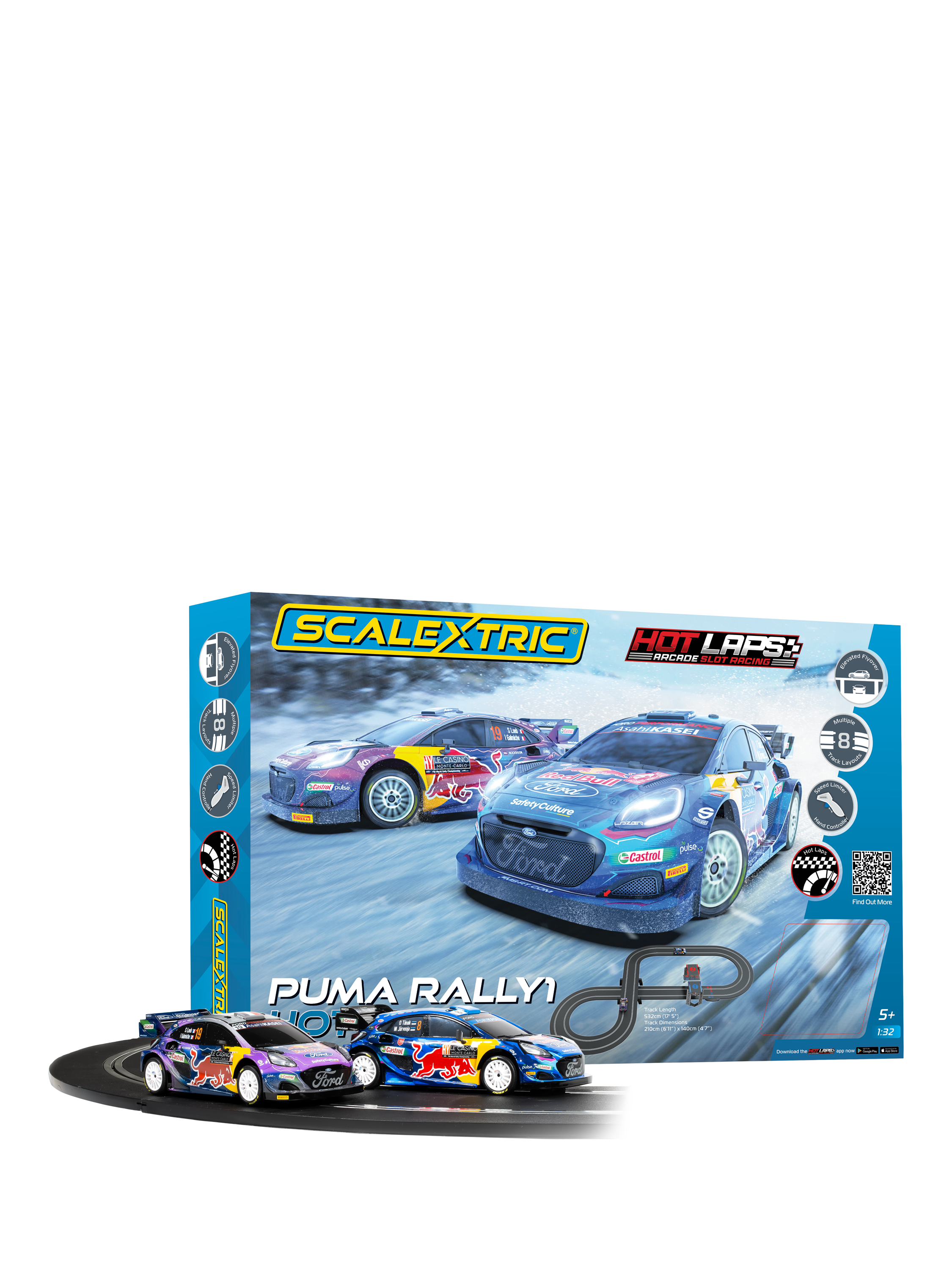 Scalextric is pleased to unveil the Ford Puma WRC Hot Laps race set. The FIA World Rally Championship pits drivers, co-drivers and hybrid-powered production-based cars against some of the most brutally tough and unforgiving terrains on the planet. Now, this unique set, developed by Scalextric in collaboration with M-Sport, brings the high-octane, turbocharged twists and turns of Rally to your home. Celebrate the resurgence of rallying and recreate the excitement of each rally stage with this incredible set featuring two of the most striking and recognisable cars of the current rally era. All brought to life with the introduction of Hot Laps technology! Scalextric Hot Laps brings back the thrill of retro rally arcade racing games with an interactive lap counter and checkpoint racing app, combining the best bits from the world of slot racing and arcade gaming to create an exciting slot racing experience for the home. Hot Laps amps up the racing fun, without the need for extra hardware, so it is fully compatible with existing tracks and cars. Simply place your smart device onto the cardboard race gantry included and select your preferred race mode. The camera on the device uses motion detection so when the car zooms under the gantry the app counts a lap - super easy and tons of fun!