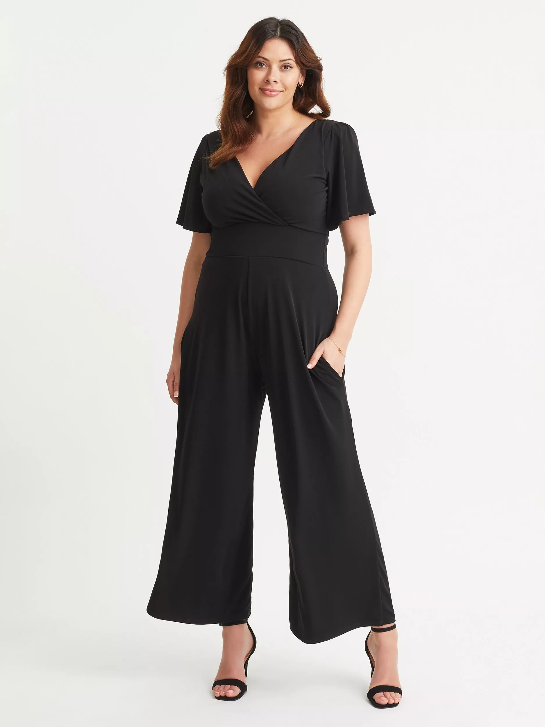 Designed to flatter all body shapes, our jumpsuit has self-tie fastening, angel wing sleeves, a v shaped neckline, soft shoulder pads and wide leg trouser. Dress it up or down for a fabulous look!