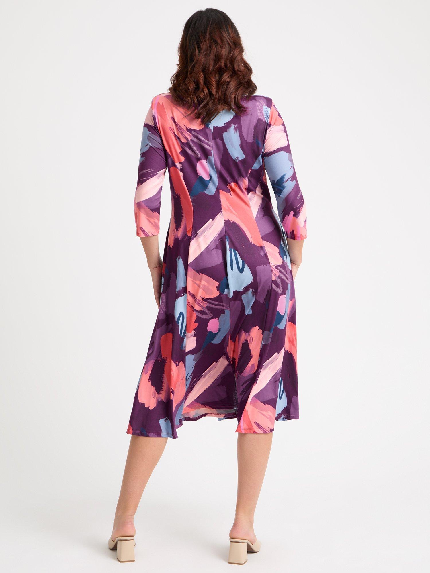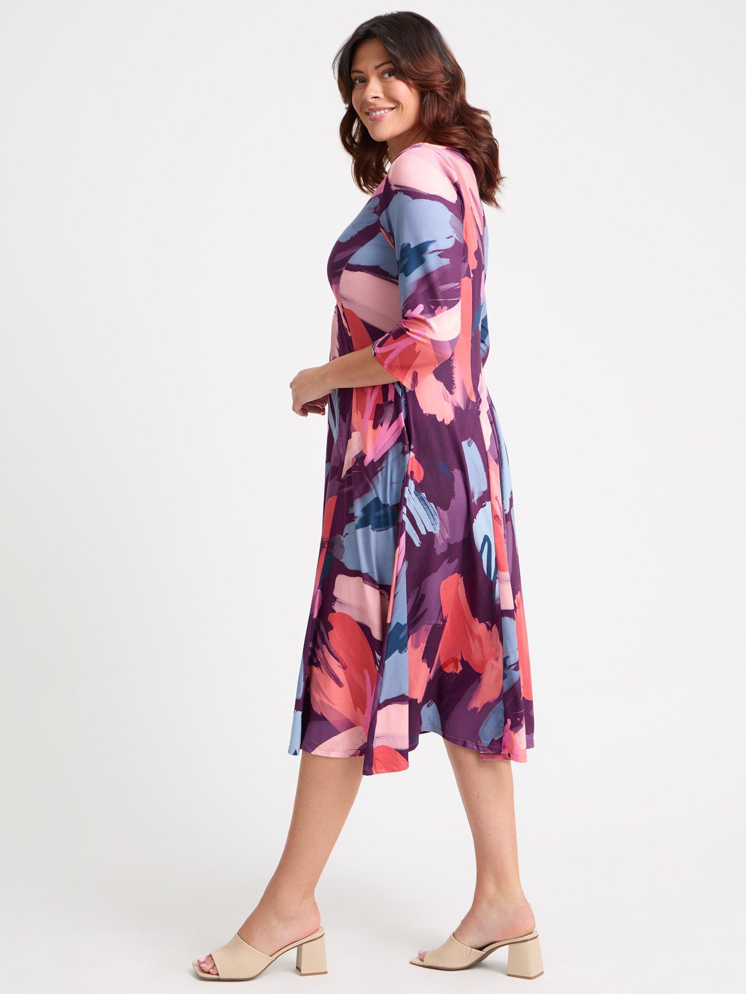 Pure comfort and confidence emanates from this version of the Scarlett & Jo classic form-flattering fit and flare midi dress. Crafted in a super soft POWERFIT® peach touch jersey fabric, this iconic piece boasts a beautiful knot front detail and a fit and flare flowing skirt for added movement. Falling to a mid-calf midi length with ¾ sleeves, v neck and princess seams for shape this dress includes side pockets. The dress also has small detachable shoulder pads to elongate your shape.